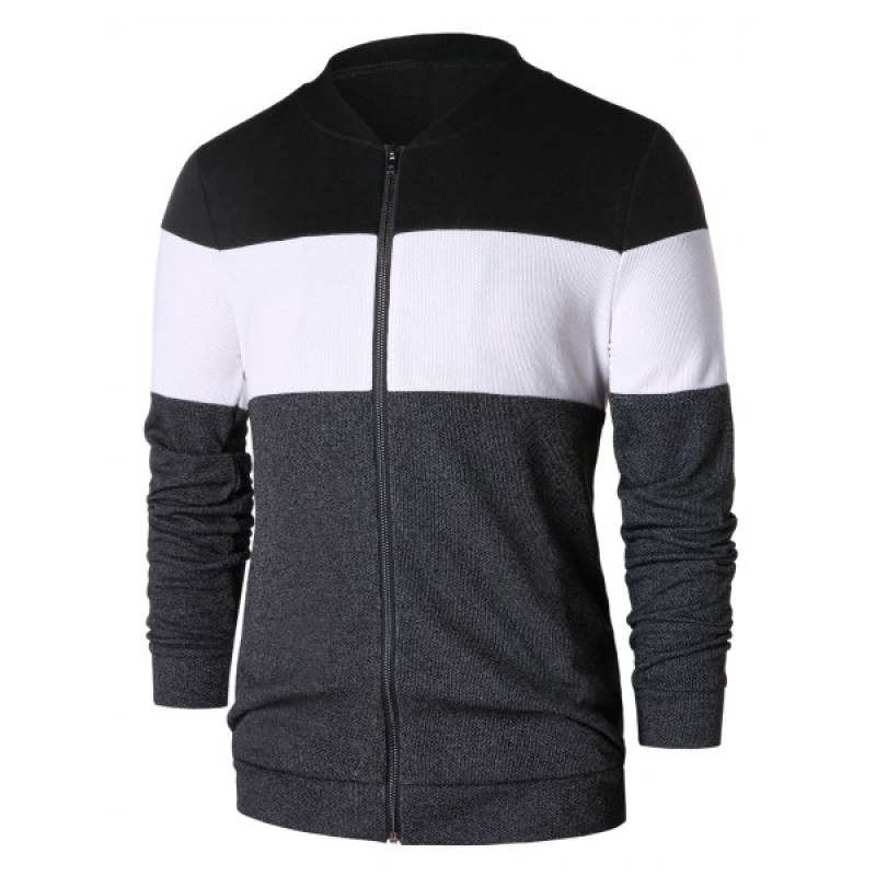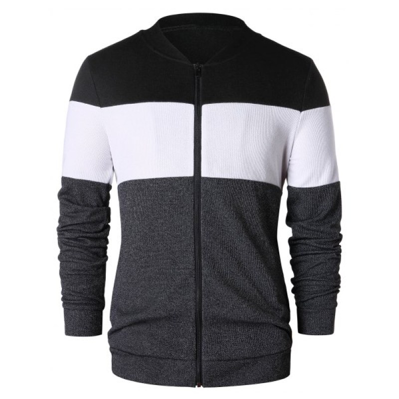 Panel Zip Up Baseball Jacket - Gray