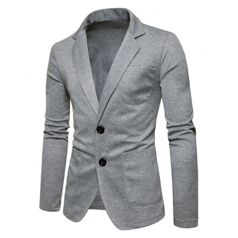 Fashion Men Two-button Casual Small Suit Jacket - Cloudy Gray