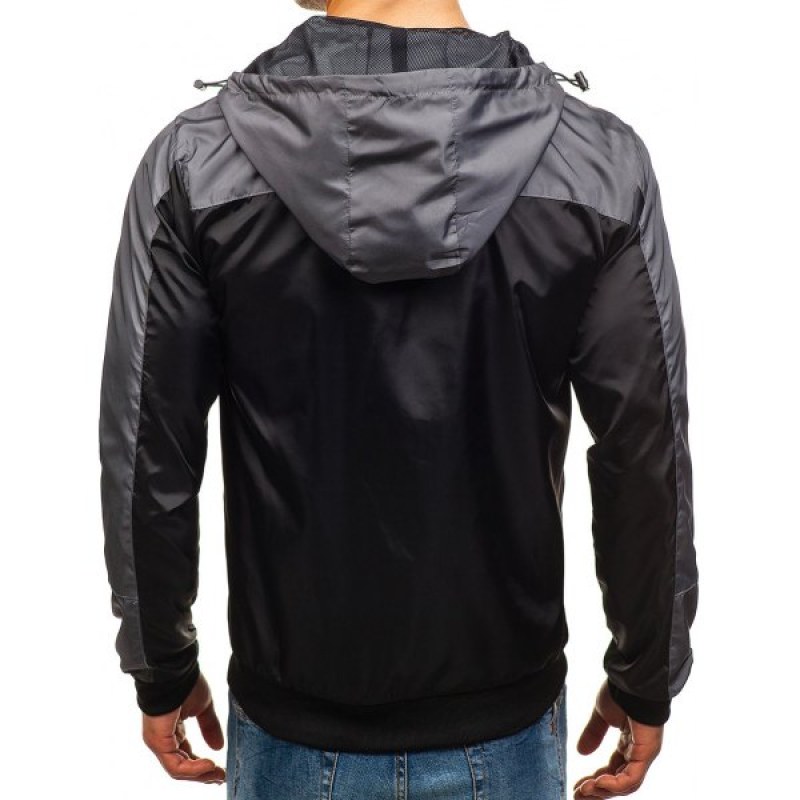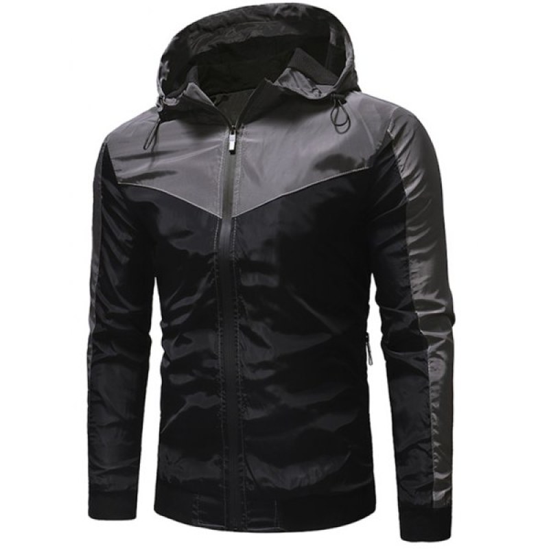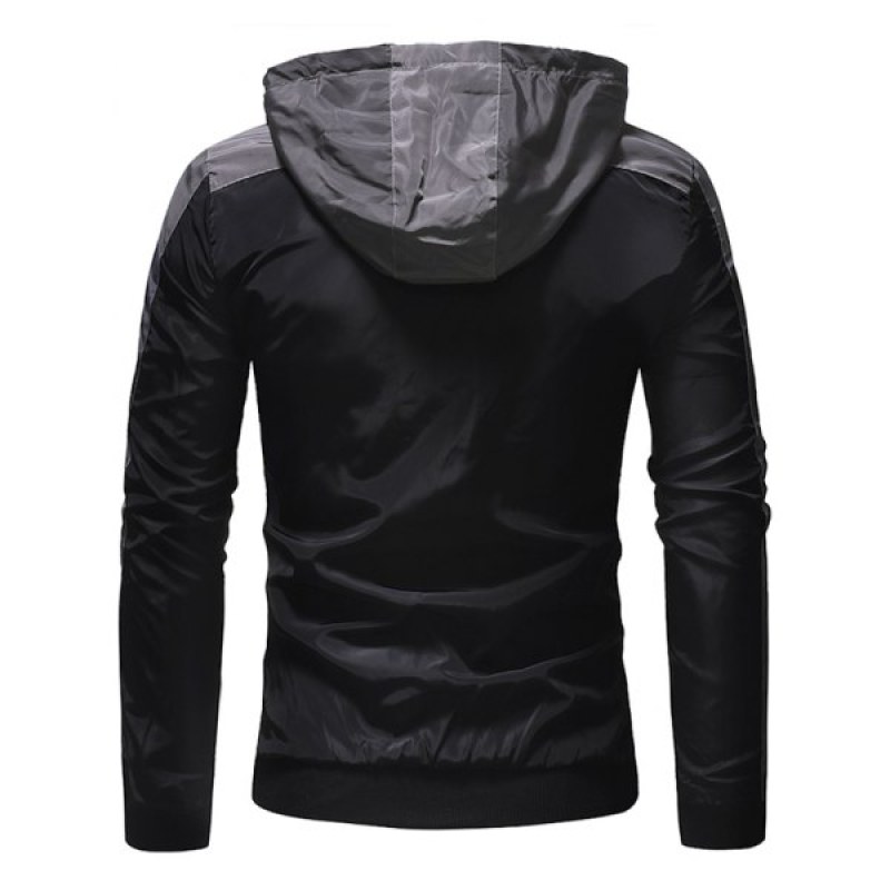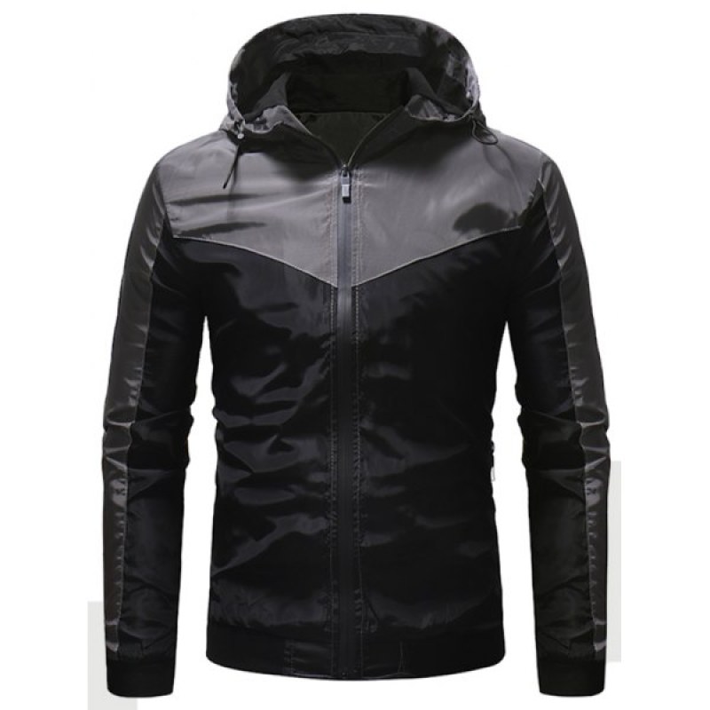 Color Block Zip Fly Outdoor Hooded Jacket - Black