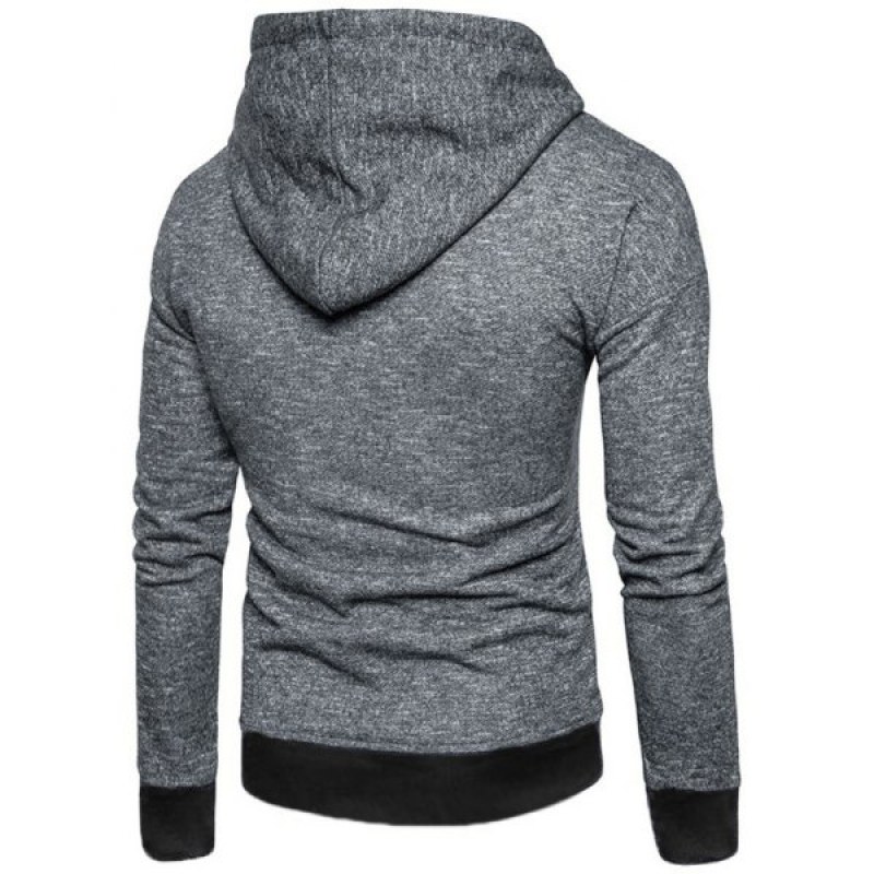 Edge Contrast Textured Print Patch Pocket Fleece Hoodie - Dark Gray