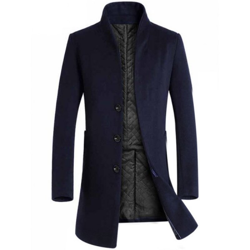 Men's Autumn and Winter Woolen Single Row Buckle Long Slim Coat - Gray