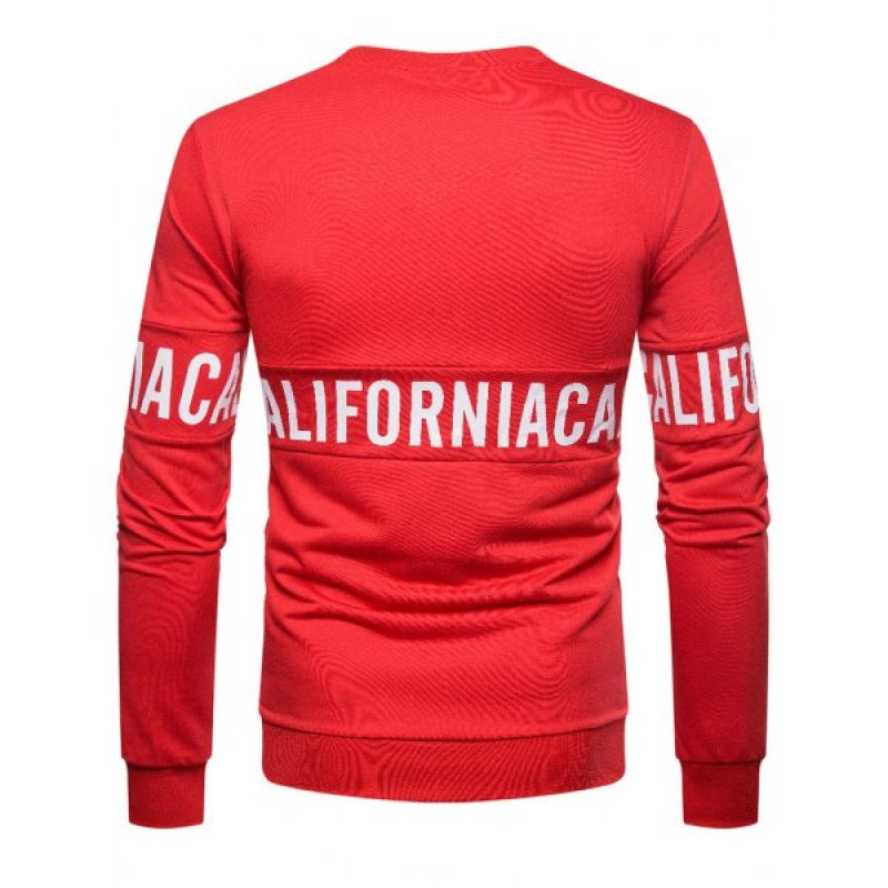 Solid Color Letter Printed Pullover Sweatshirt - Red