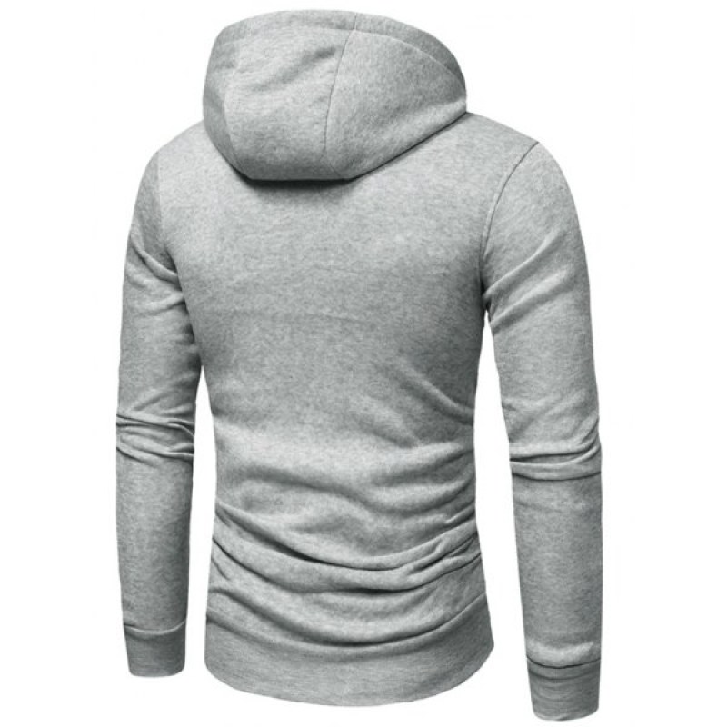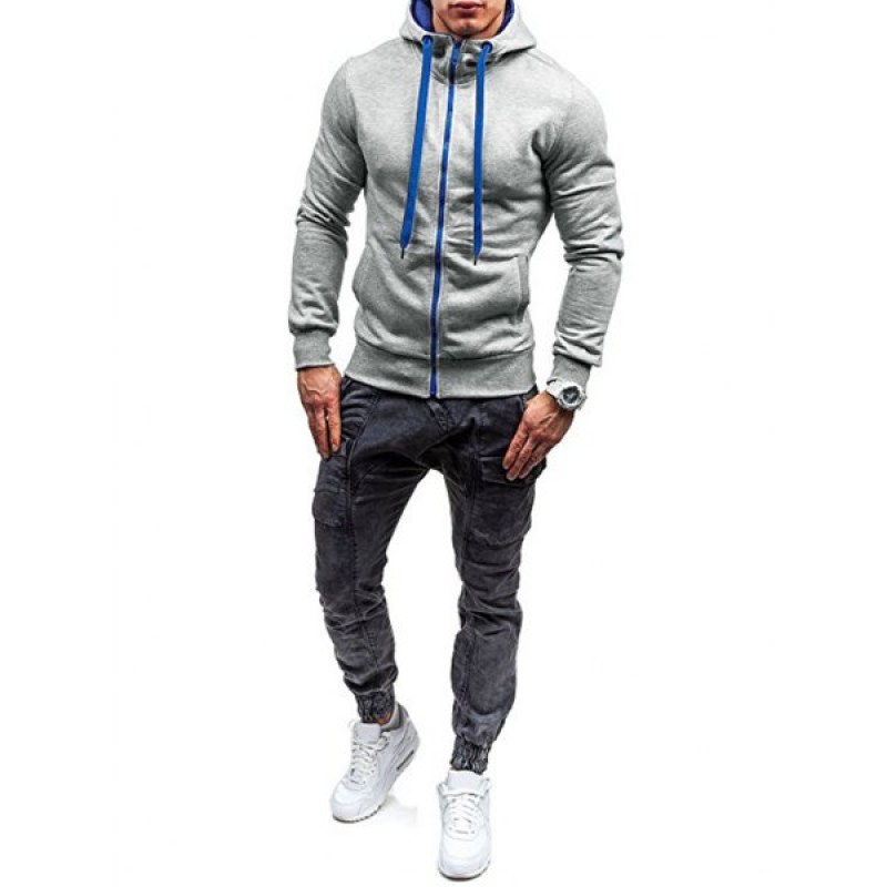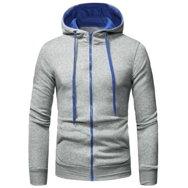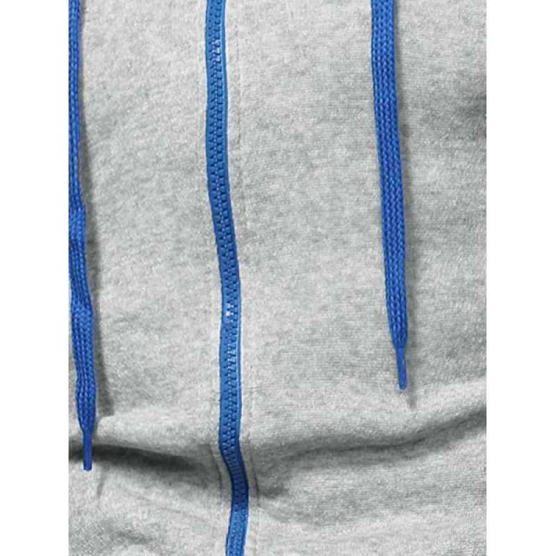 Zipper Color Spliced Slim Fit Hoodie - Dark Gray