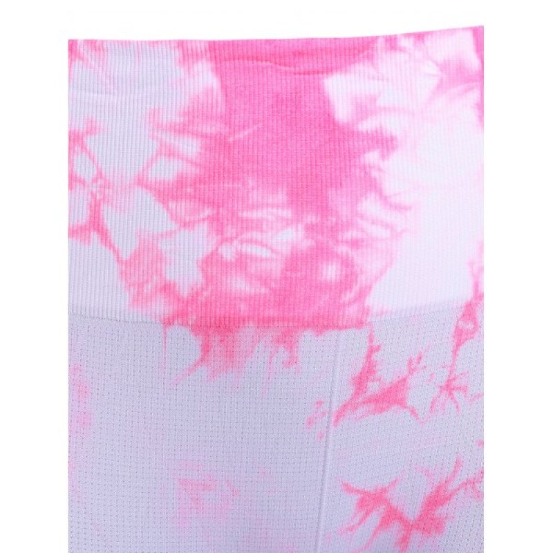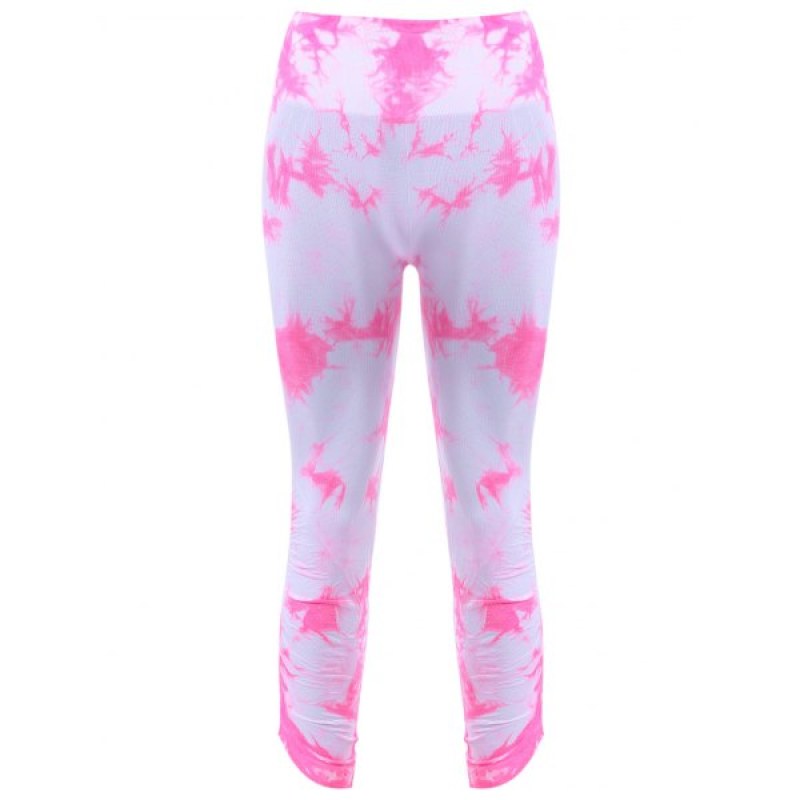 Active Elastic Waist Tie Dyed Women's Cropped Leggings - Pink