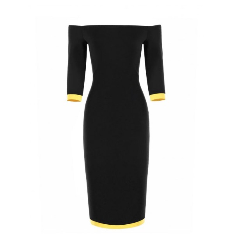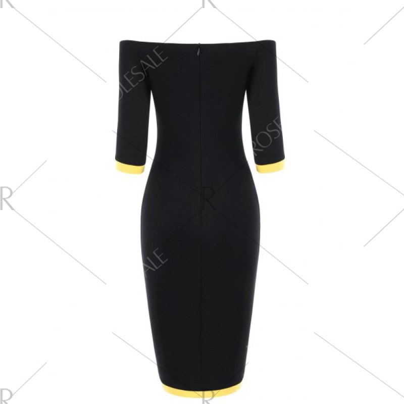Off The Shoulder Two Tone Bodycon Dress - Yellow And Black