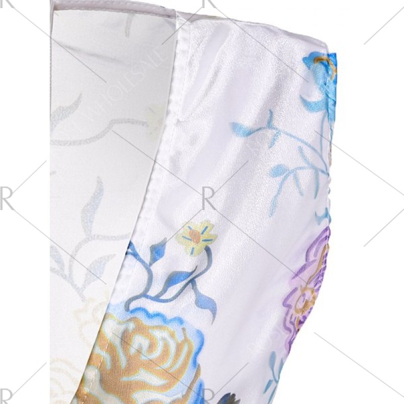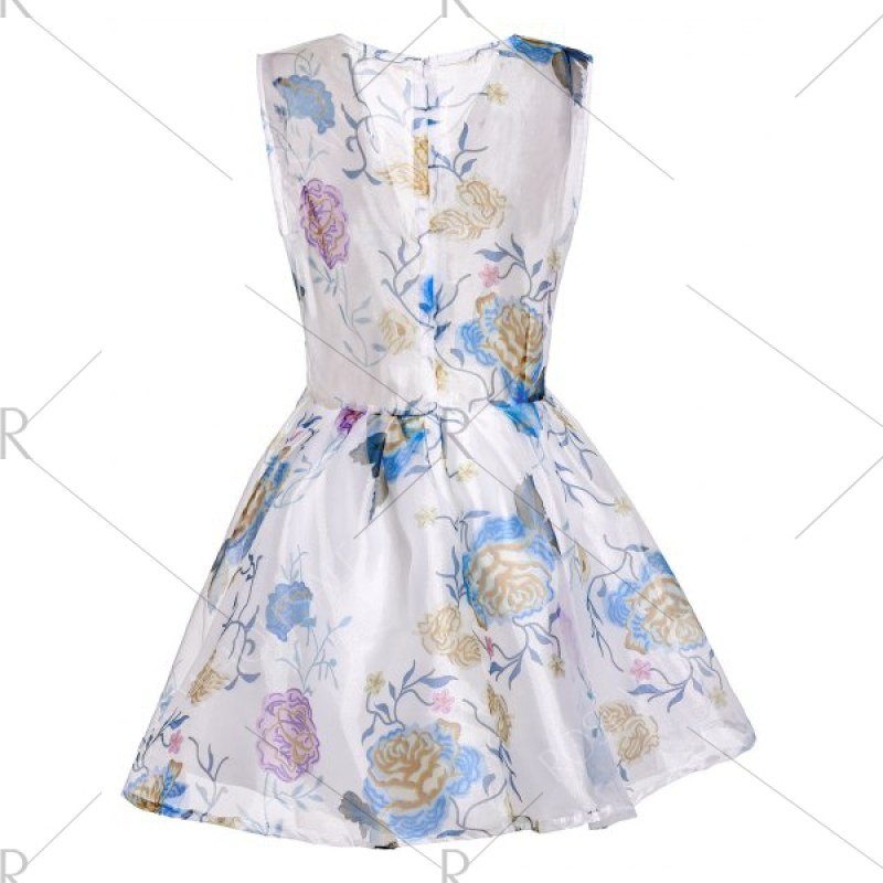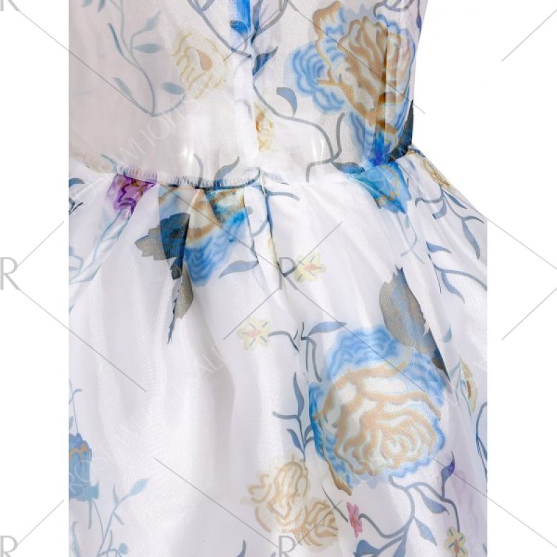 Plunging Neck Flower See-Through Ball Gown Dress - White