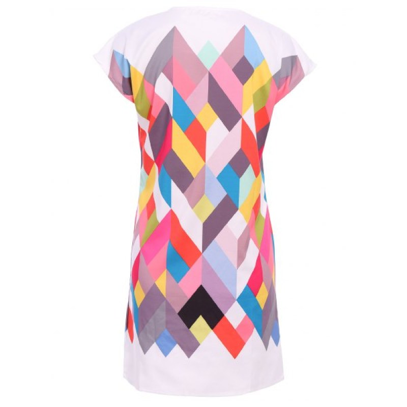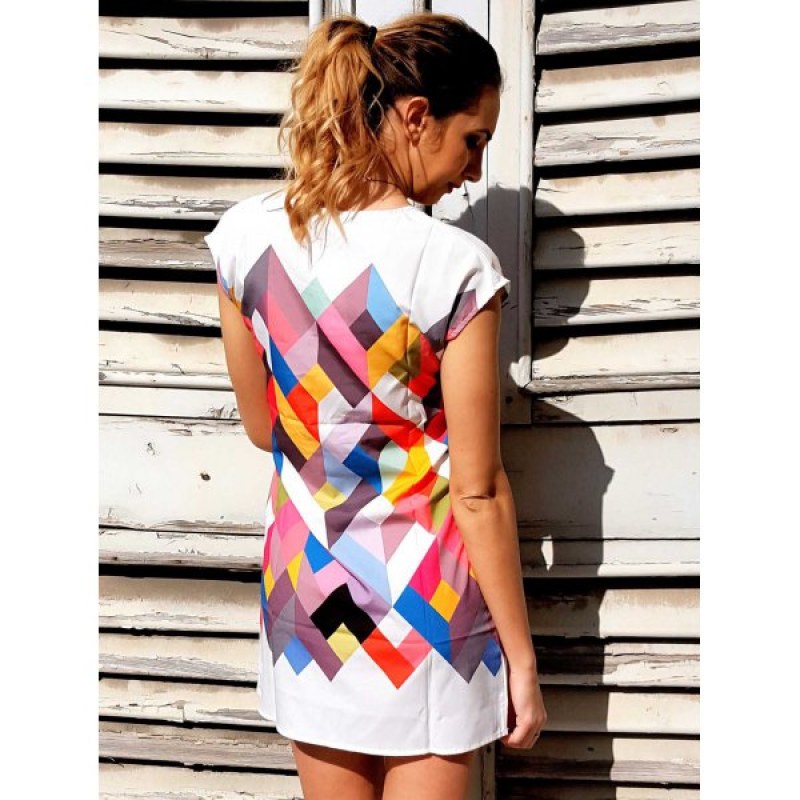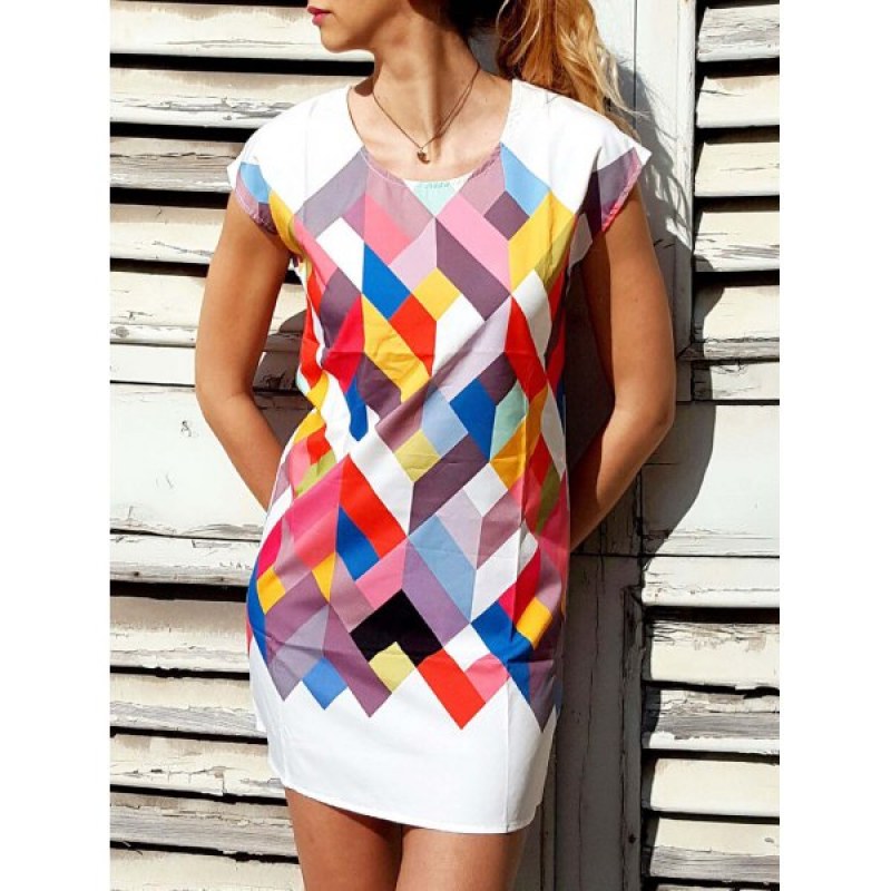 Chic Scoop Collar Short Sleeve Geometric Print Women's Dress -