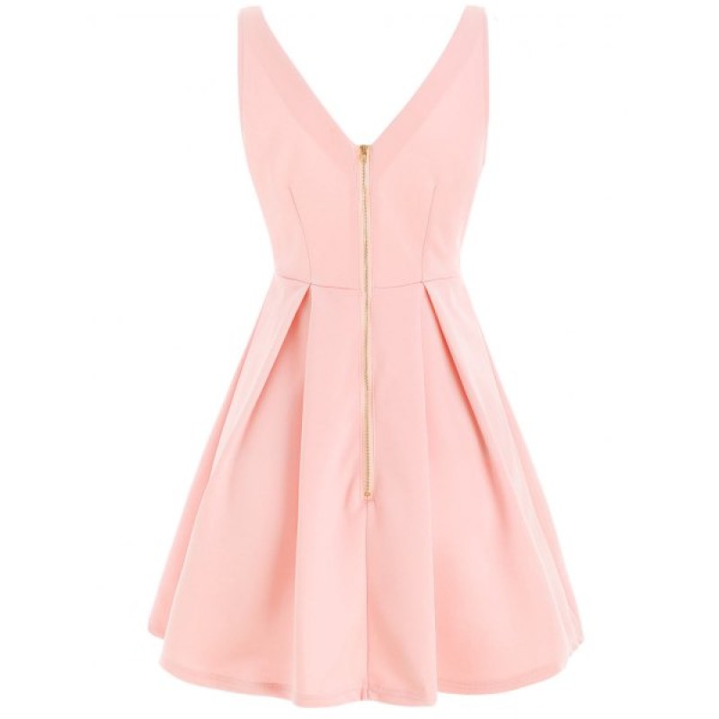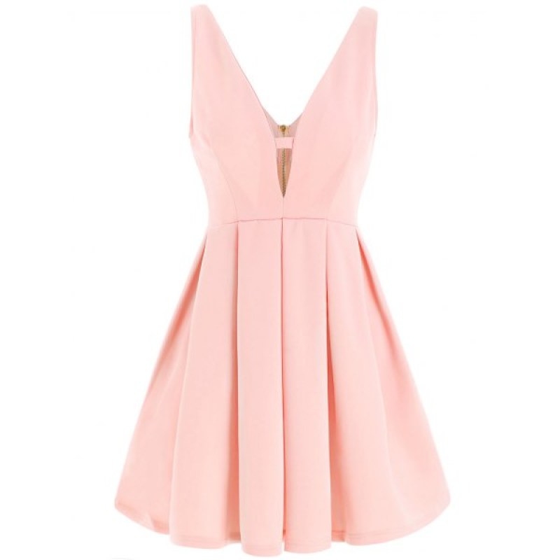 Fashion Plunging Neck leeveless olid Color Zippered Women's Dress - Pink