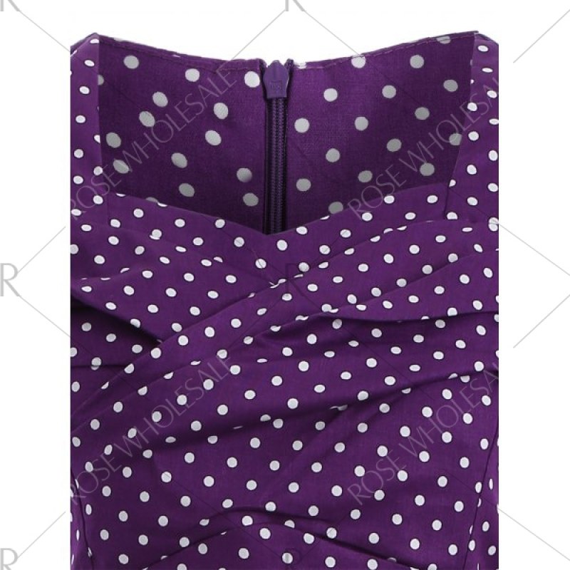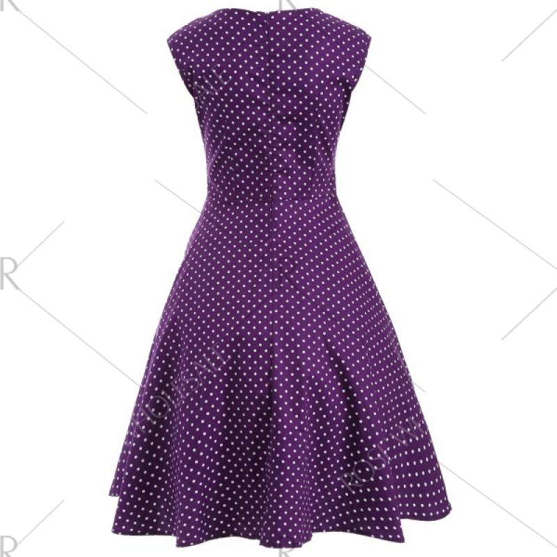 Audrey Hepburn Style Tiny Polka Dot Pattern Swing Skater Dress - Purple