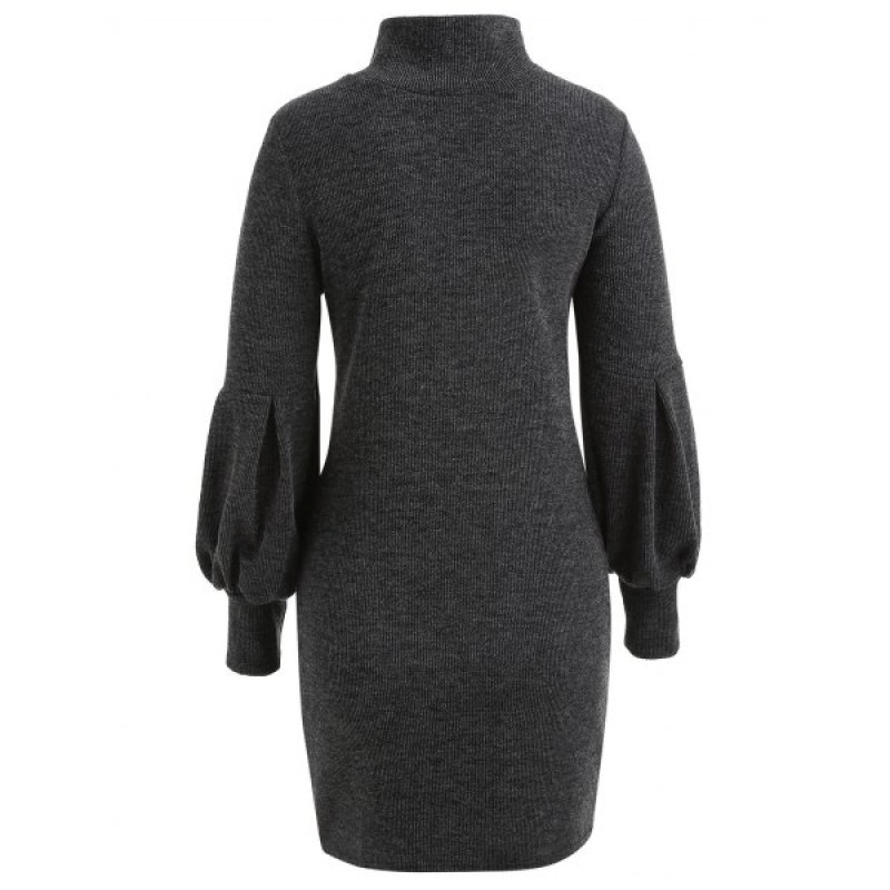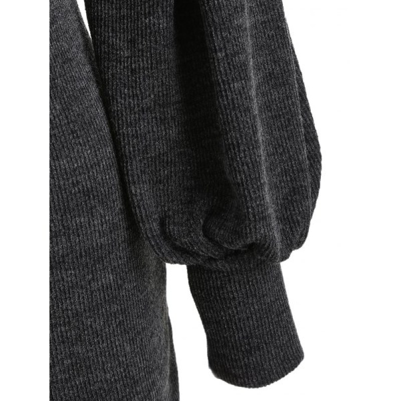 Puff Sleeve Mini Sweater Dress - Dark Gray
