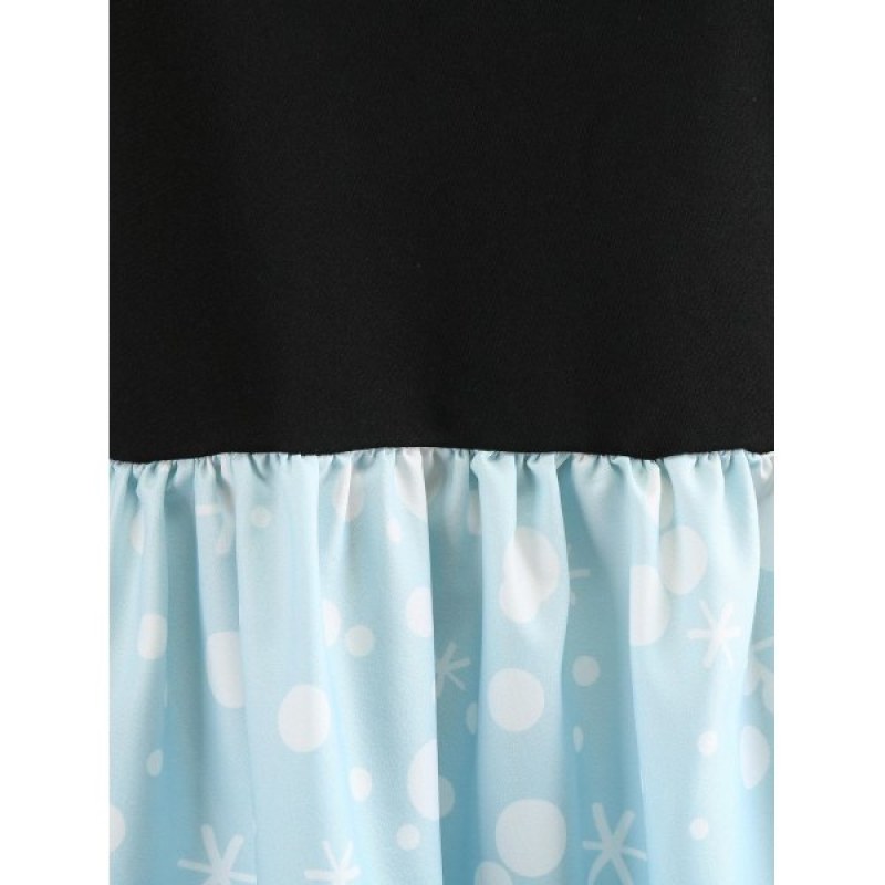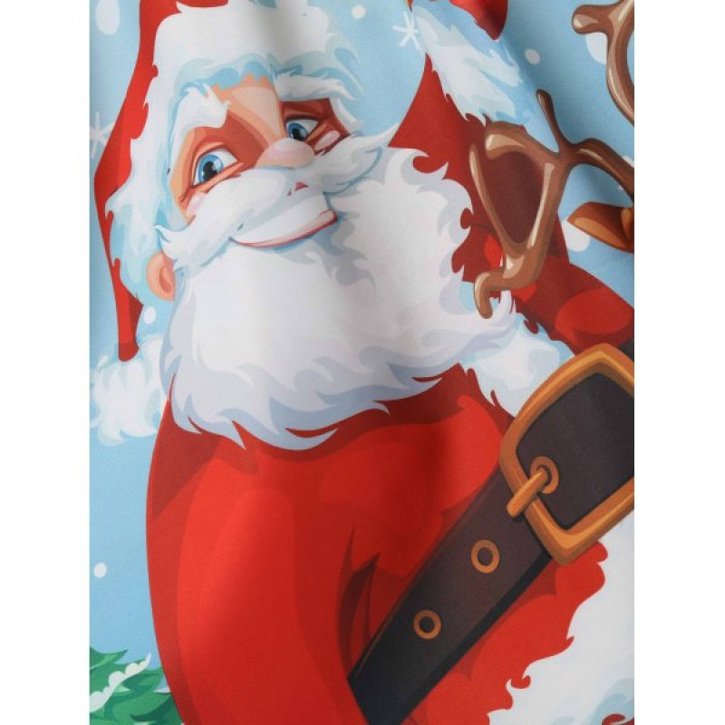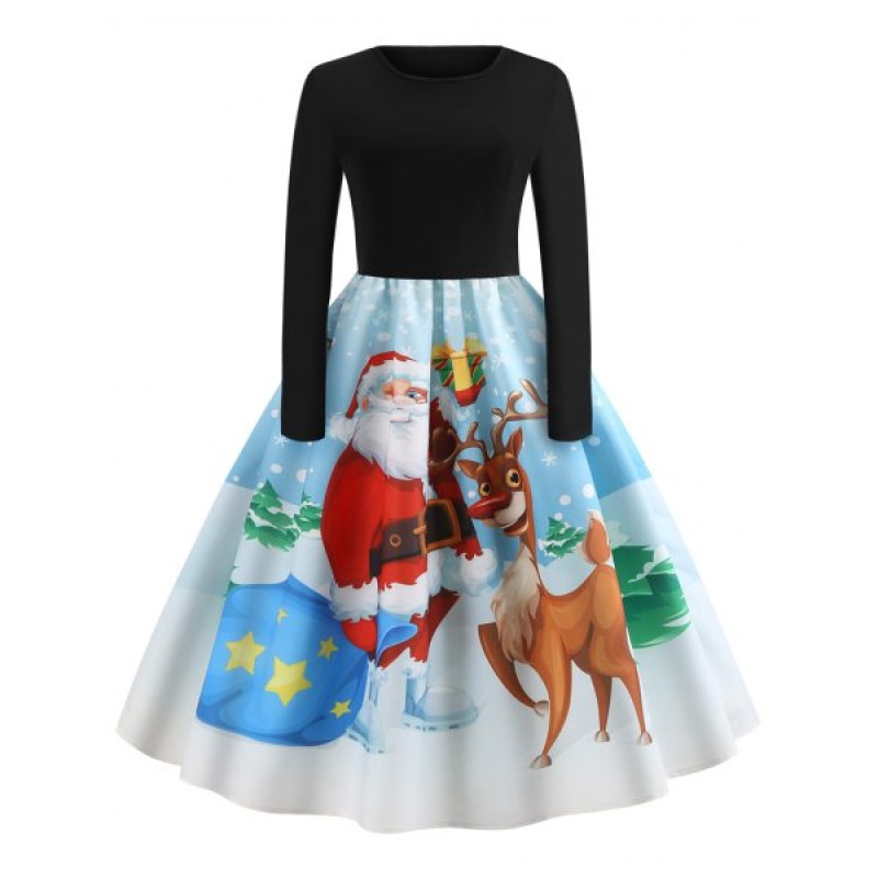 anta Claus and Elk Print Vintage Dress - Black