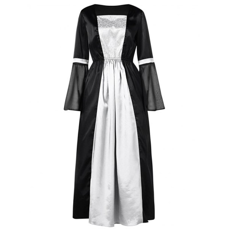 Two Tone Long Sleeve Halloween Party Dress - Black