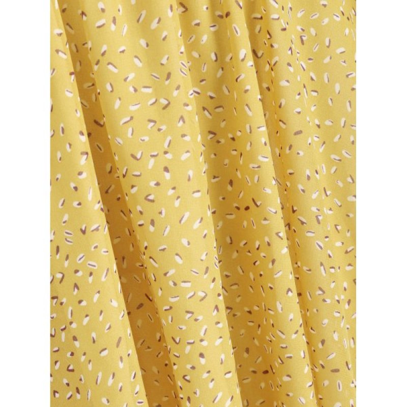Elastic Waist Printed Fit and Flare Dress - Yellow