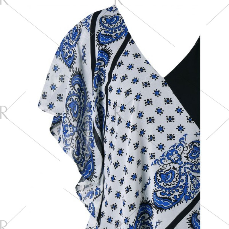 Look beautiful in this paisley print poncho overlay dress. Fluttering poncho moves with short sleeve detail for a unique touch. The layer underneath is soft and stretchy for a comfortable fit. Double v neck design.