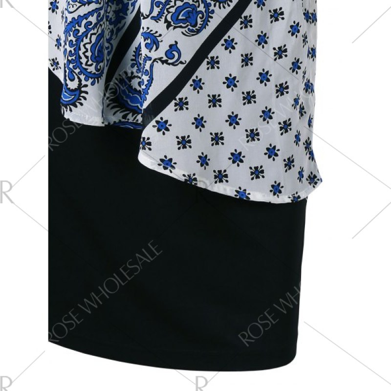 Paisley Print Overlay Mini Dress - Black