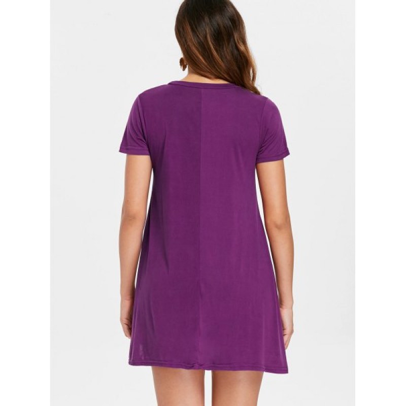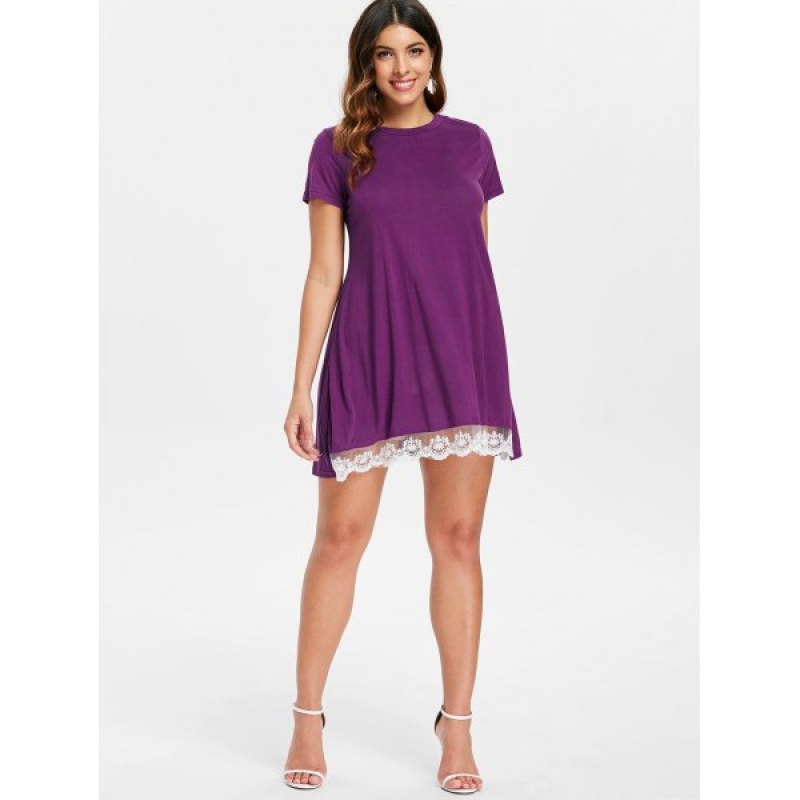 hort leeve Lace Hemline hift Dress - Purple