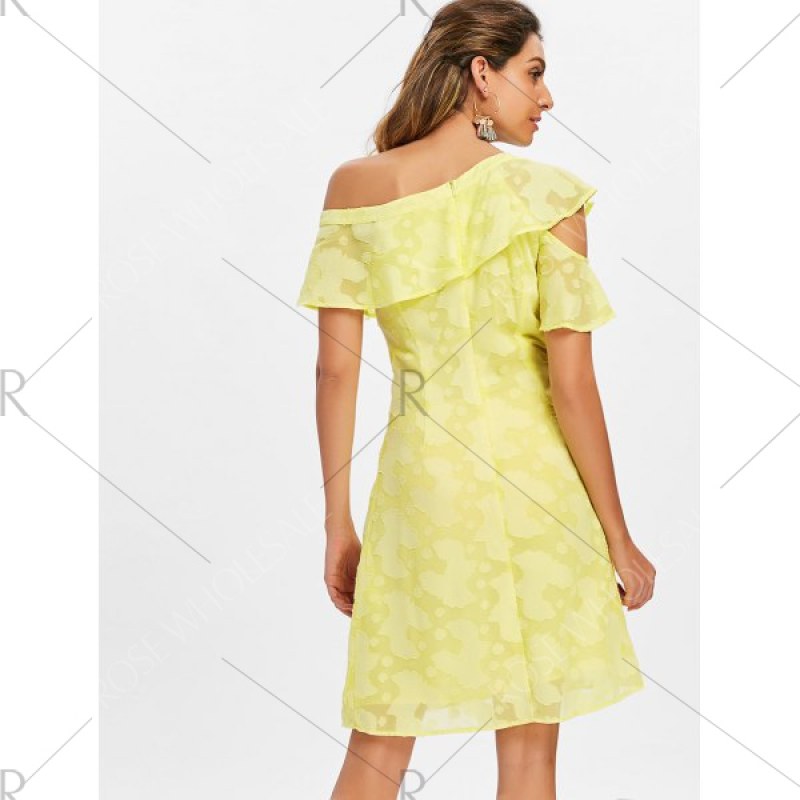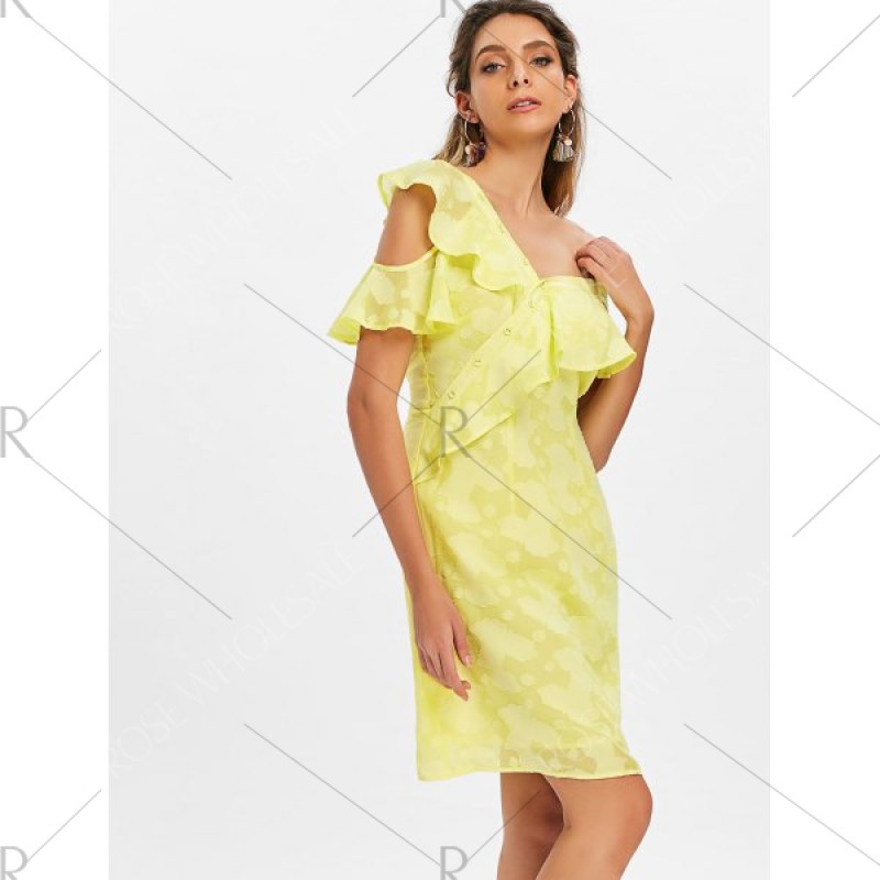 Leaf Pattern Buttoned Casual Dress - Yellow