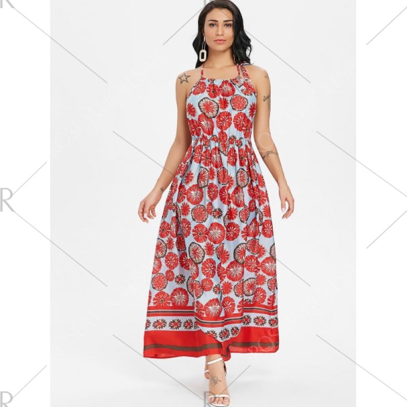 Bohemian Printed Cut Out Maxi Dress - Chestnut Red