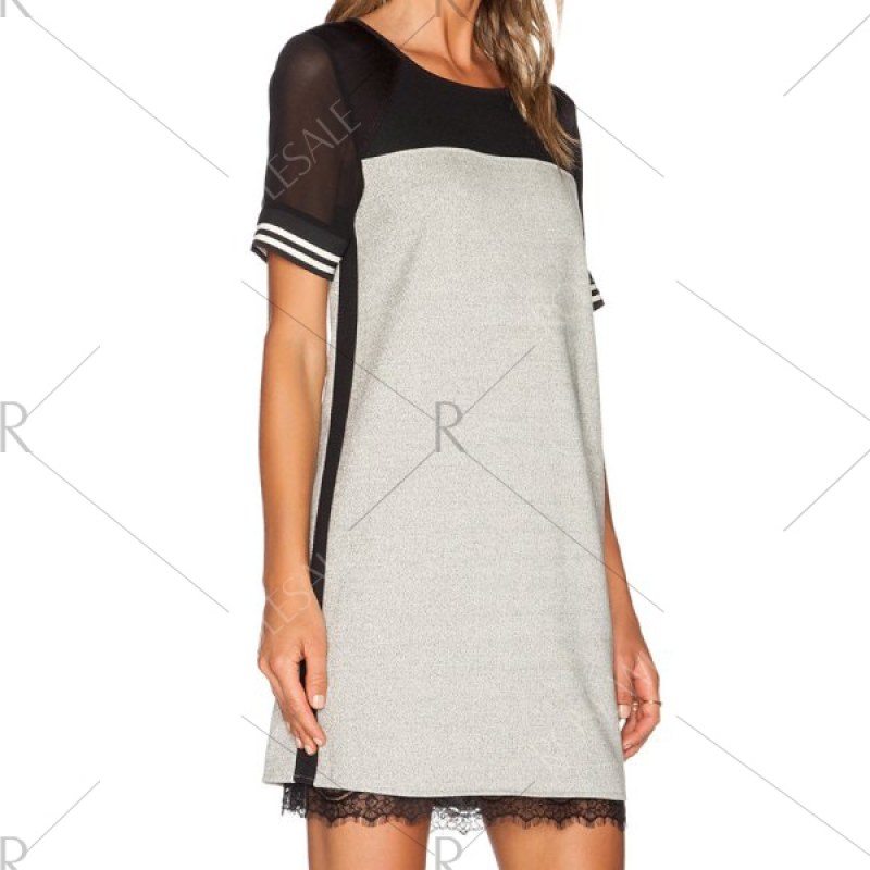 Grey Short Sleeve Contrast Sheer Dress - Black And Grey