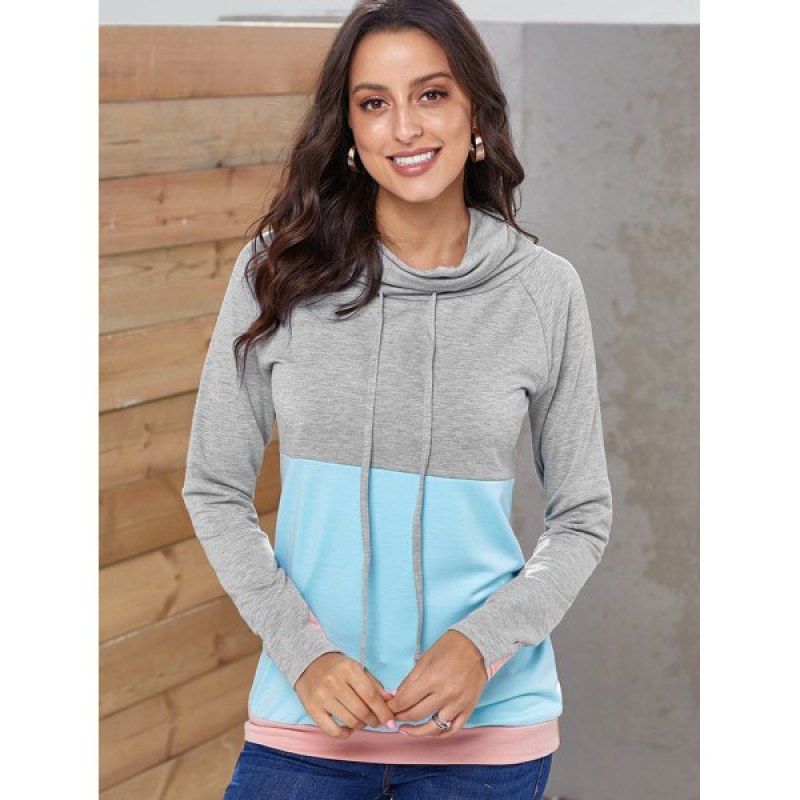 Color Block Cowl Neck weatshirt - Day ky Blue