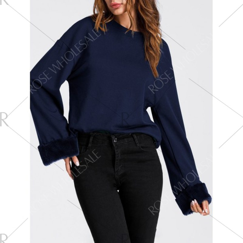 Drop Shoulder Faux Fur Insert Sweatshirt - Purplish Blue