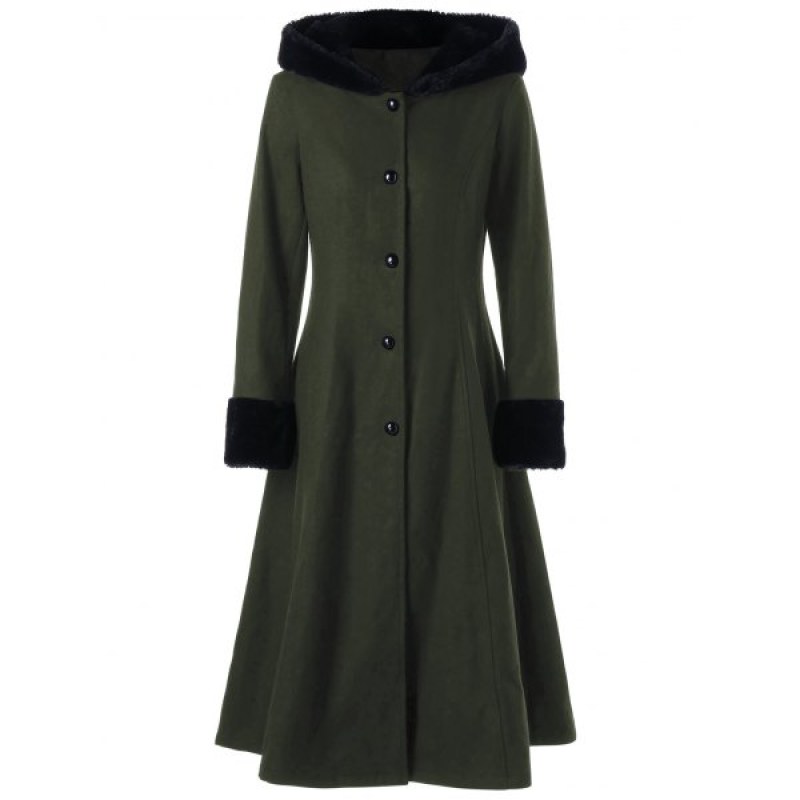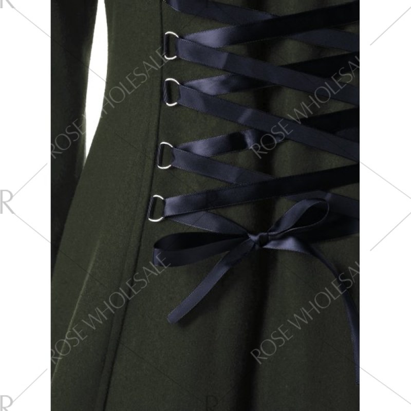 Lace Up Longline Hooded Coat - Olive Green