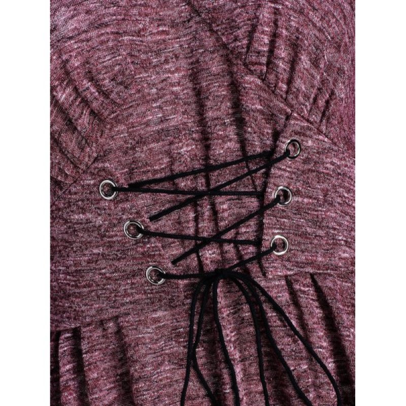 Lace Up Space Dye Tunic Sweatshirt - Firebrick