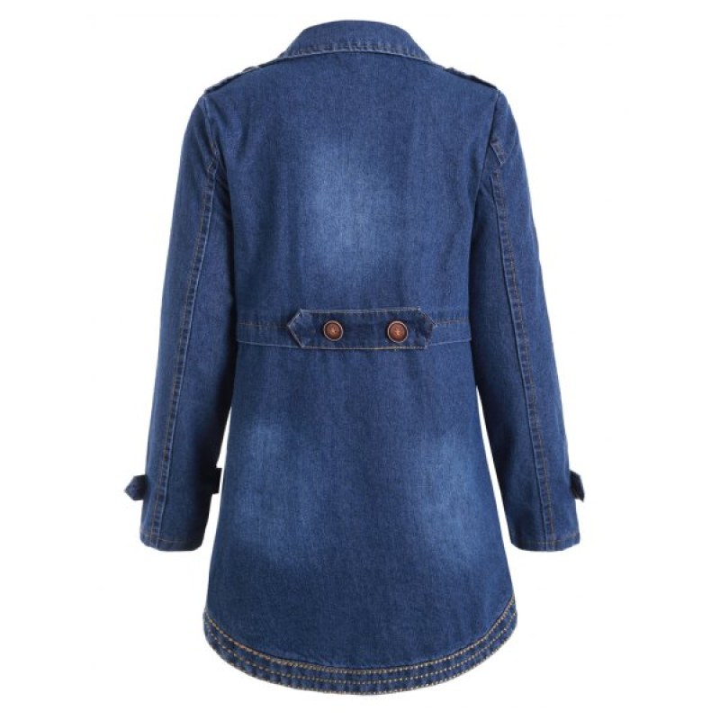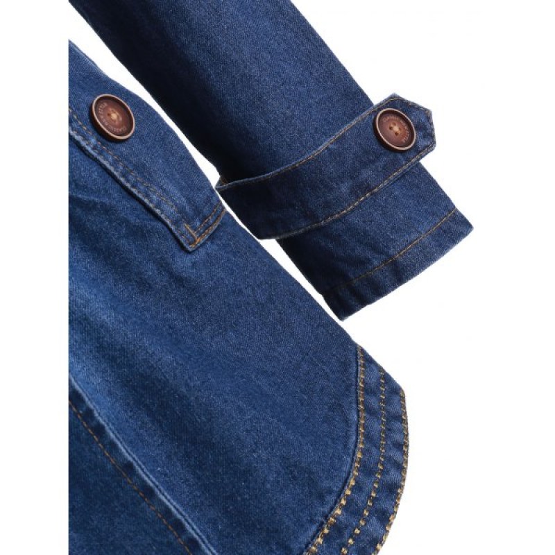 Buttons Embellished Lapel Denim Coat with Pockets - Denim Dark Blue