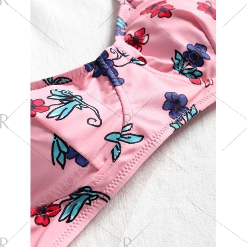 Sweet and sleek. this floral bikini is divided into a halter bra top with knot back closure and sexy V-shaped string briefs. No underwire design with removable sponge pads. Pair it with sunnies and floppy straw hats will look great!