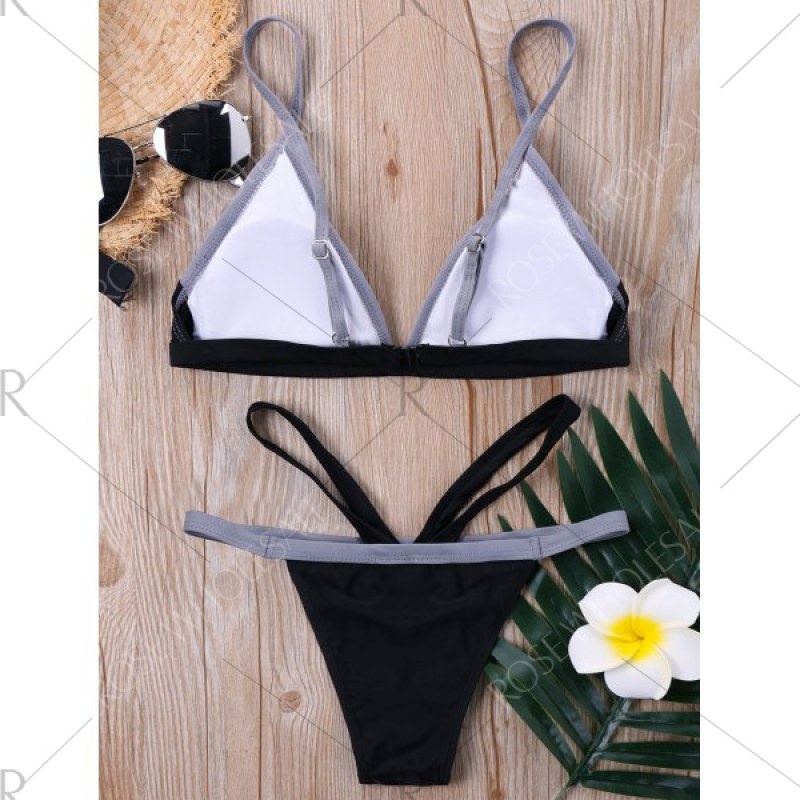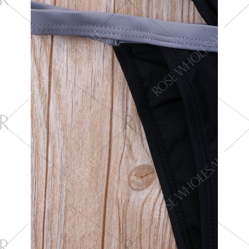 Two Tone Cut Out Bikini Set - Black
