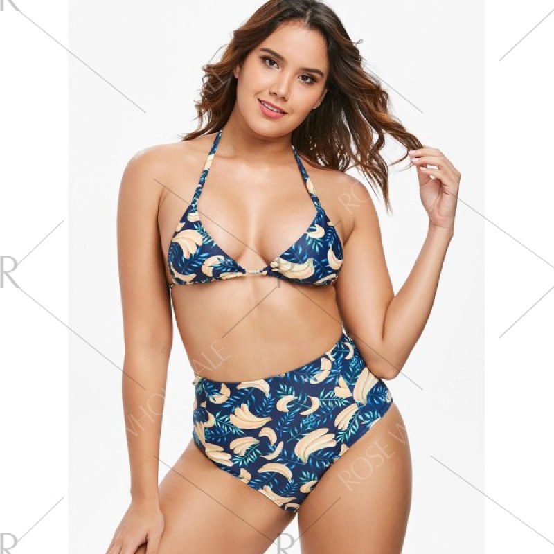 Banana Print High Rise Bikini Set - idnight Blue