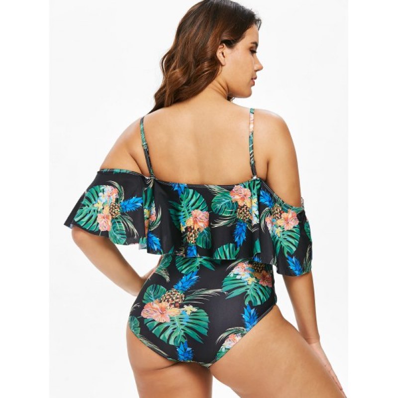 Fill your summer beach style with this tropical one-piece swimsuit. It features fresh pineapple and palm print all over. adjustable thin straps with flounce overlay create cold shoulders design. high leg detail which creates killer curves while keeping your modesty.