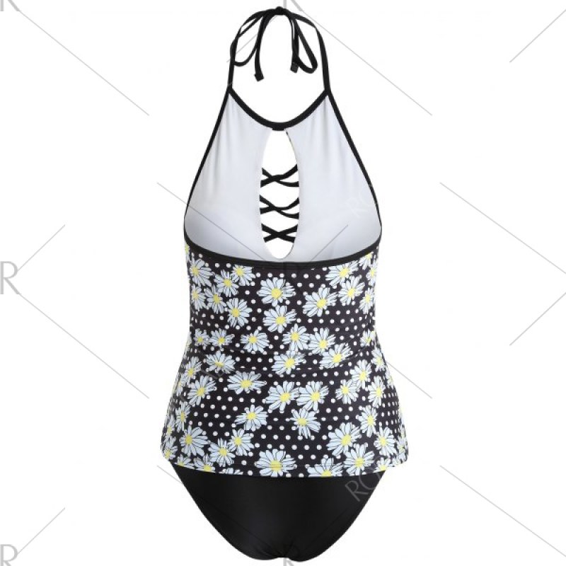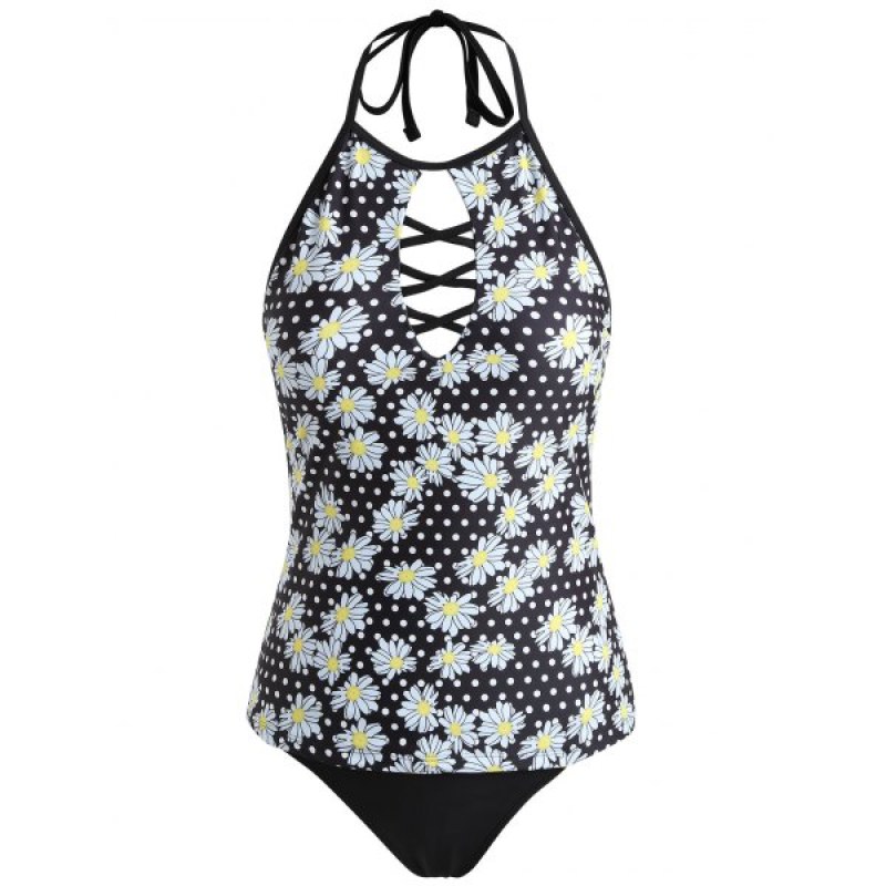 Floral Backless Tankini - Black
