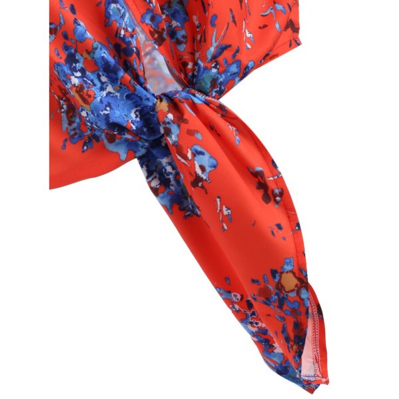 Achieve a fun. playful look in this outstanding blouse. It has a simple vee shaped neckline that has been reinforced with stitching to help it retain its original shape. The sleeves are dropped and have plenty of room for a full range of motion. The hemline ends at the mid hip area and ties in front for a chic look.