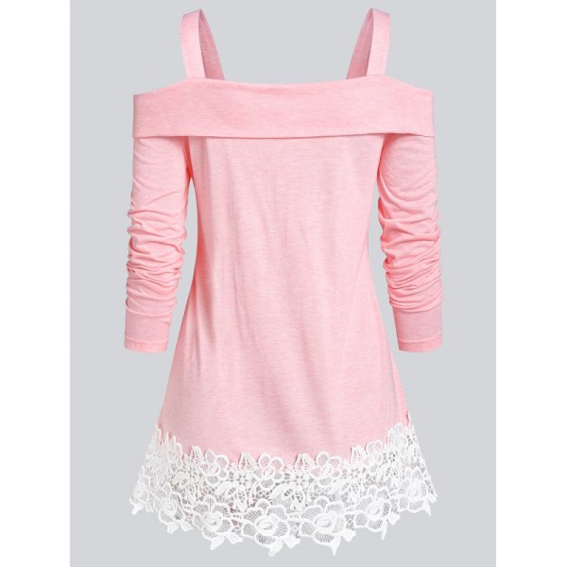 Open Shoulder Space Dye Applique T Shirt - Pink