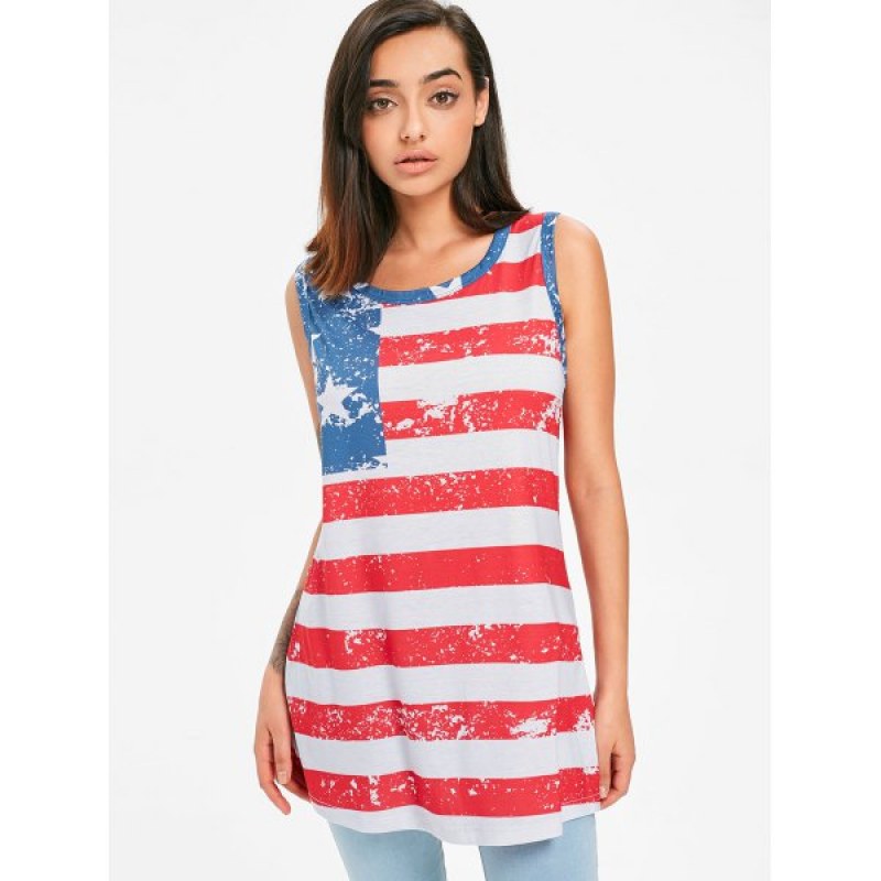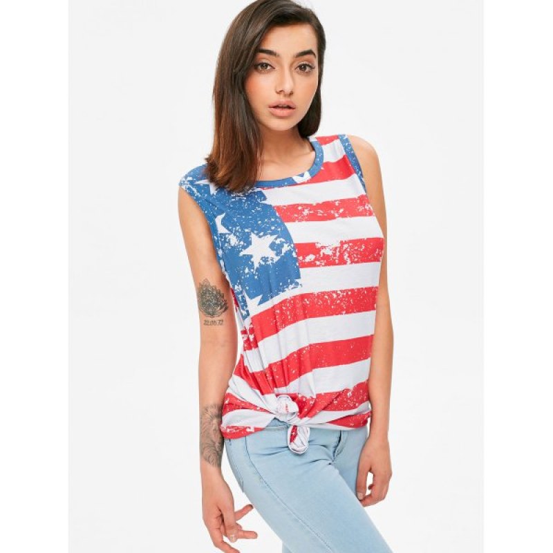 Show your love for country with this darling vintage American flag tank. It is the basic tank which features a classic round neckline. and a chic high low hemline. Tie a knot to look more fashionable in the crowd.