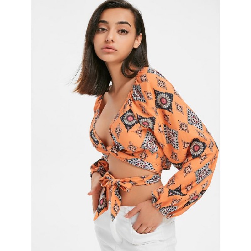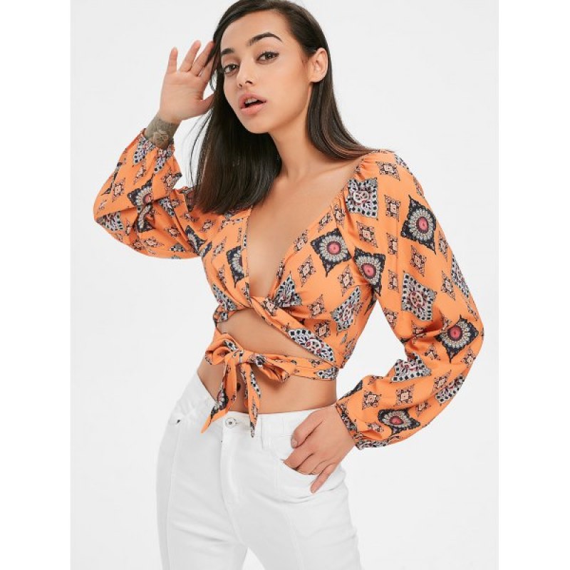 Front Tie Print Blouse - School Bus Yellow