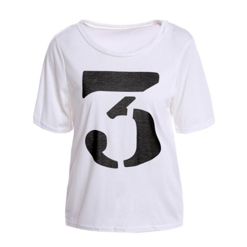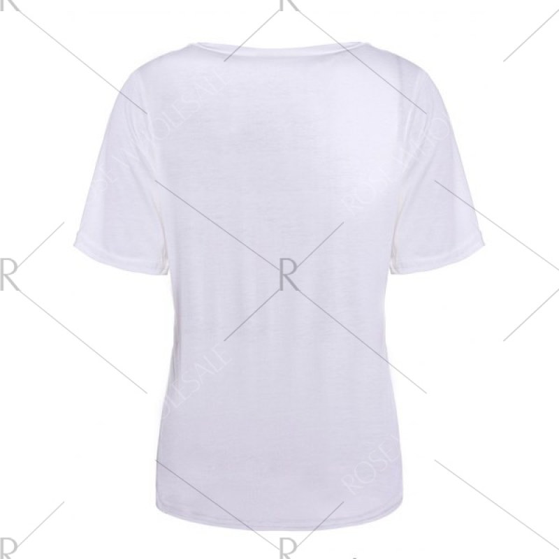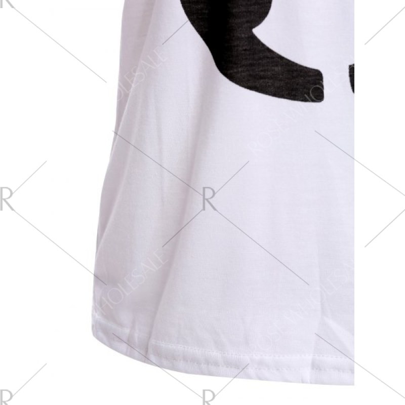 Color Block Retro Style Scoop Neck Figure Print Short Sleeve Women's T-Shirt - White One