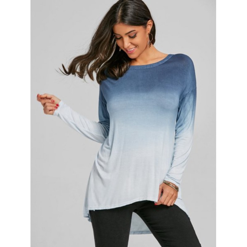 A soft and comfy tunic top features cut-out back. ombre color design. side slit and a high-low hem. Team it with skinny pants or jeans for a leisure and trendy look.