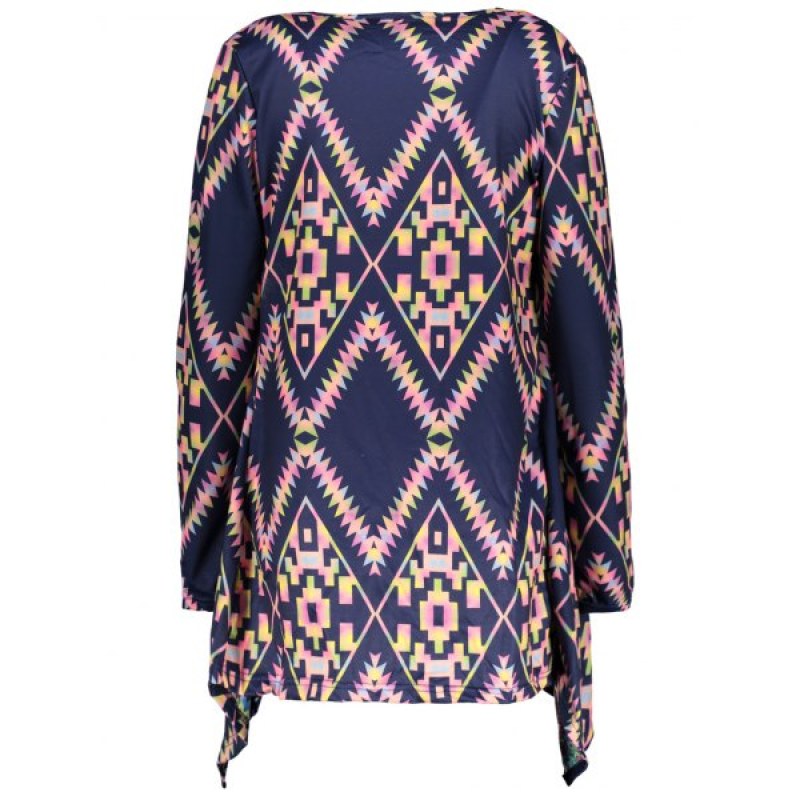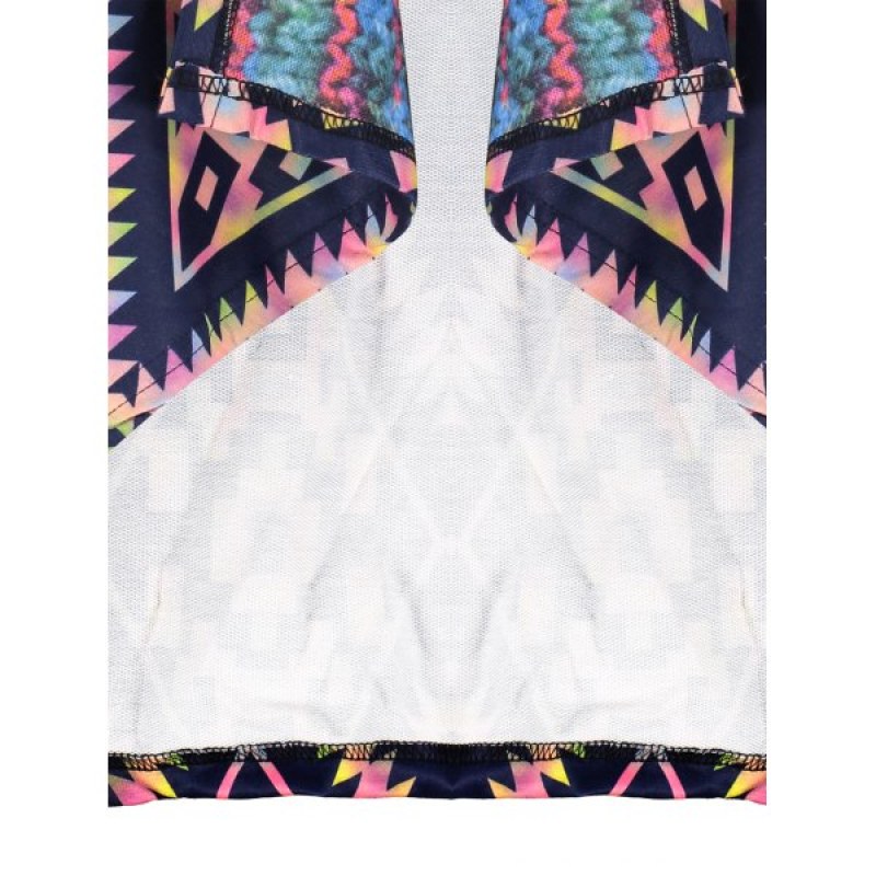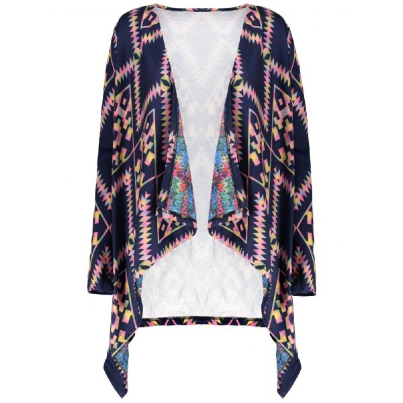 Retro tyle Collarless Long leeve Loose-Fitting Ethnic Print Women's Cardigan - Purplish Blue