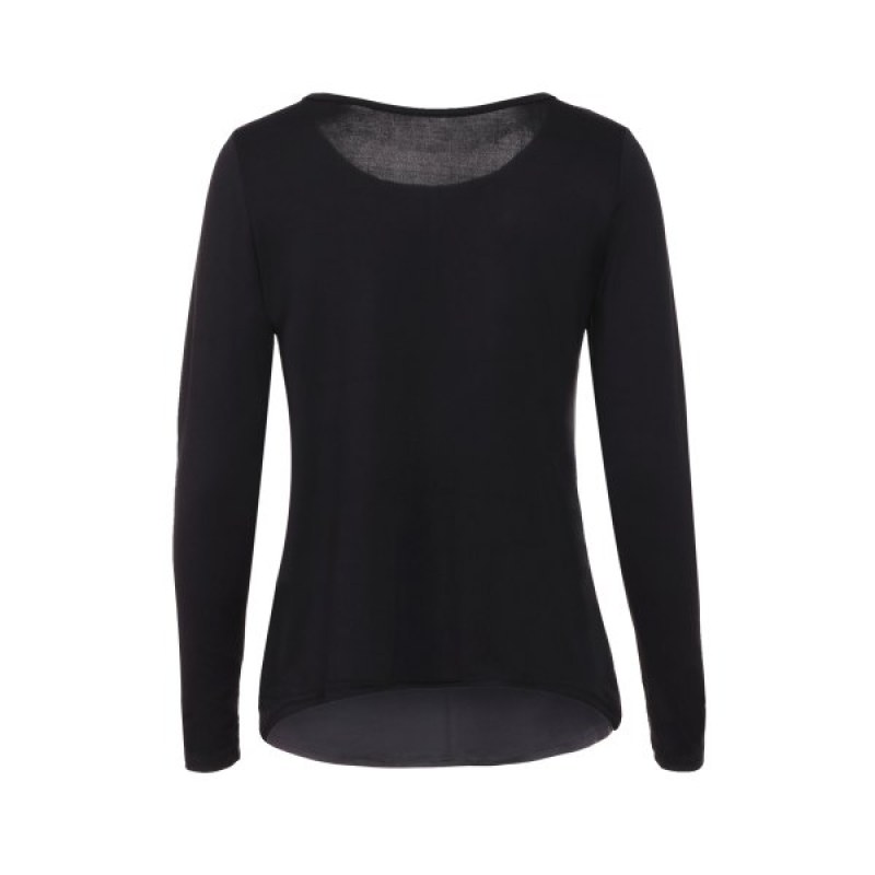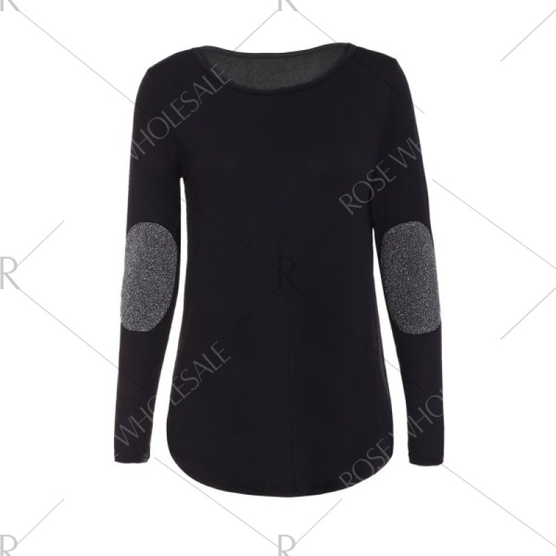 Graceful Jewel Neck equin plicing Long leeve Blouse For Women - Black