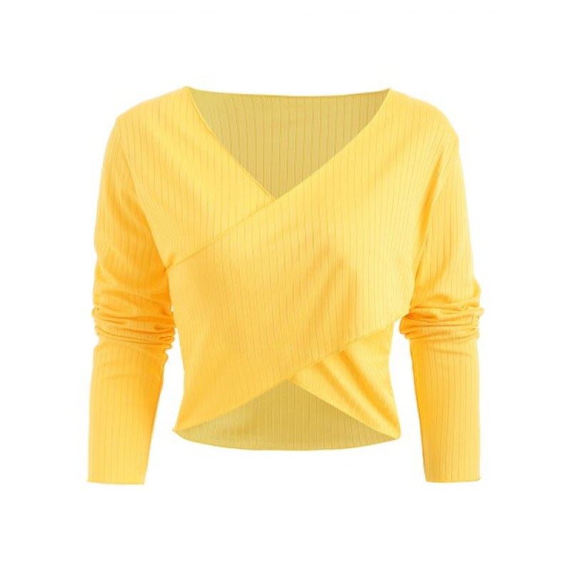 Ribbed Long Sleeve Cross Front Top - Goldenrod