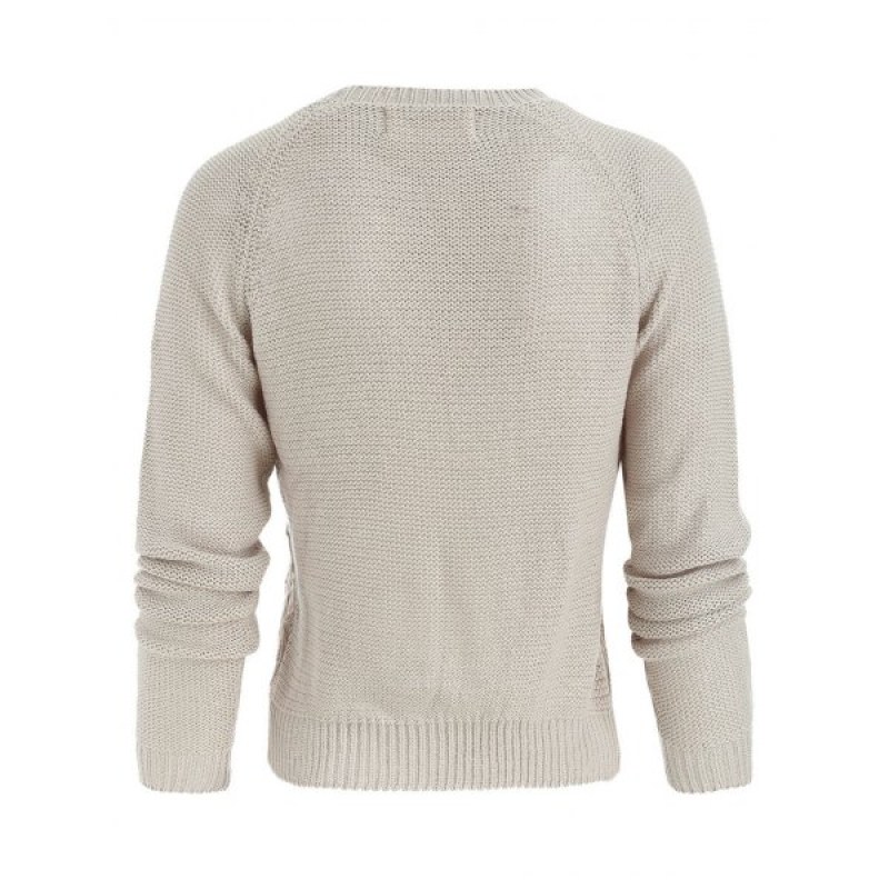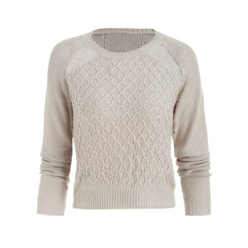Sheer esh Insert Pullover Sweater - Beige