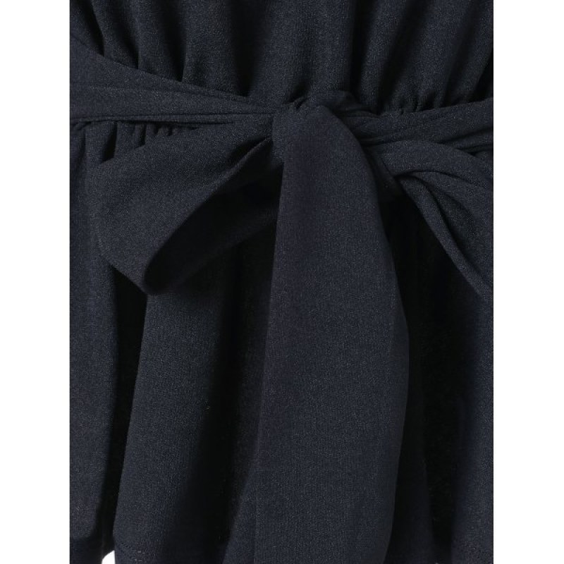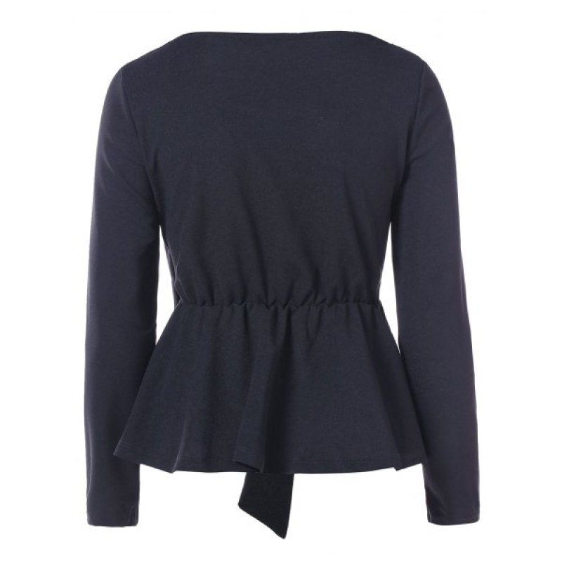Floral Embroidery Long Sleeve Peplum T-shirt - Black