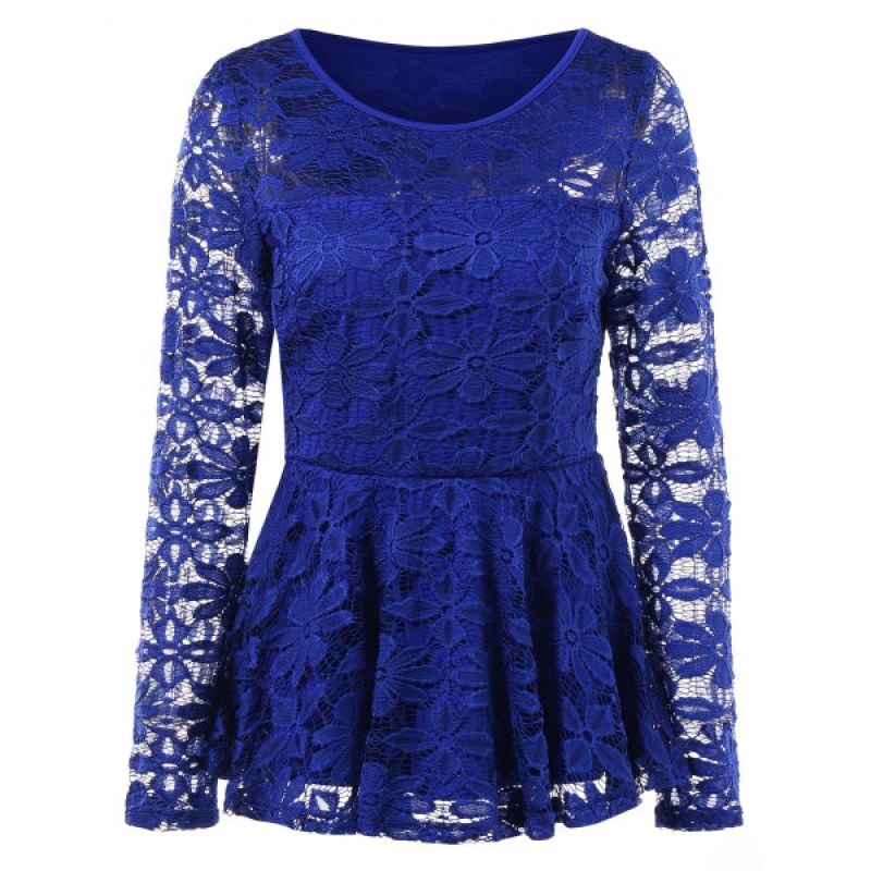 Long Sleeve Lace Skirted Blouse - Royal Blue