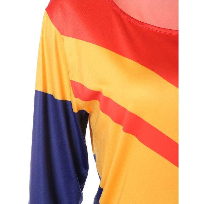 Chevron Pattern Color Block Full Sleeve T-shirt - Golden Brown