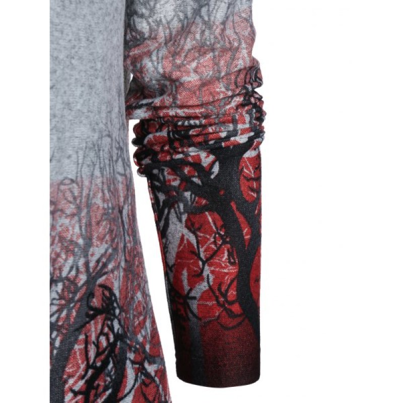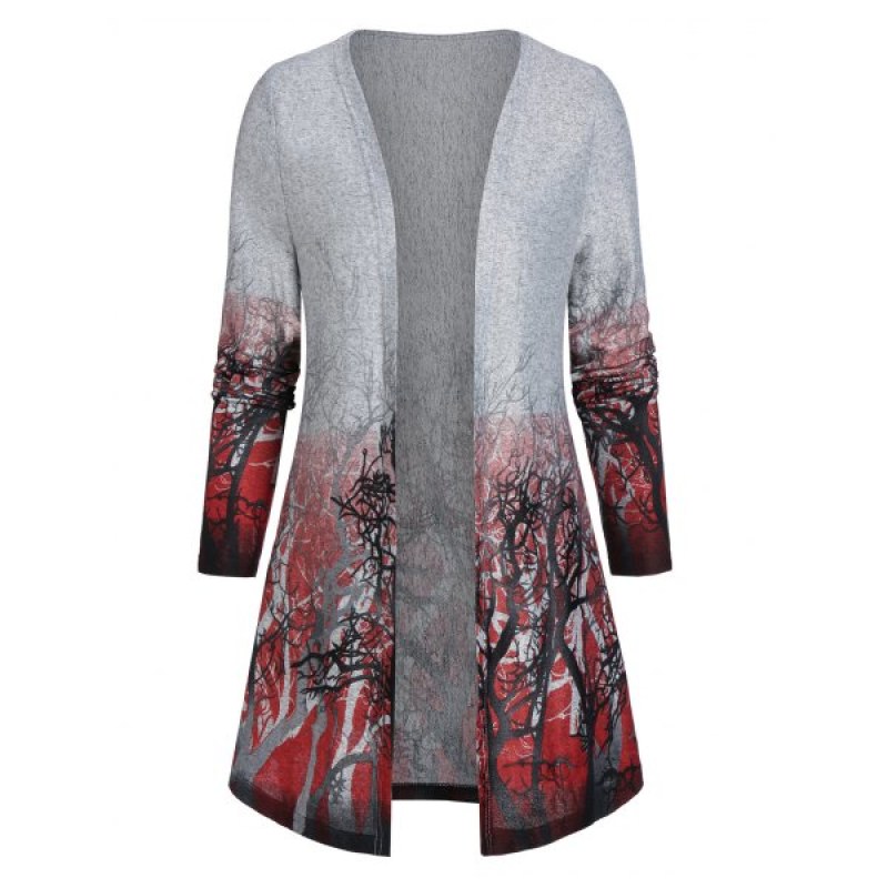 Open Front Tree Print Tunic Cardigan - Light Slate Gray