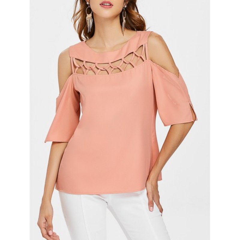 Cutout Cold houlder Blouse - Light Pink