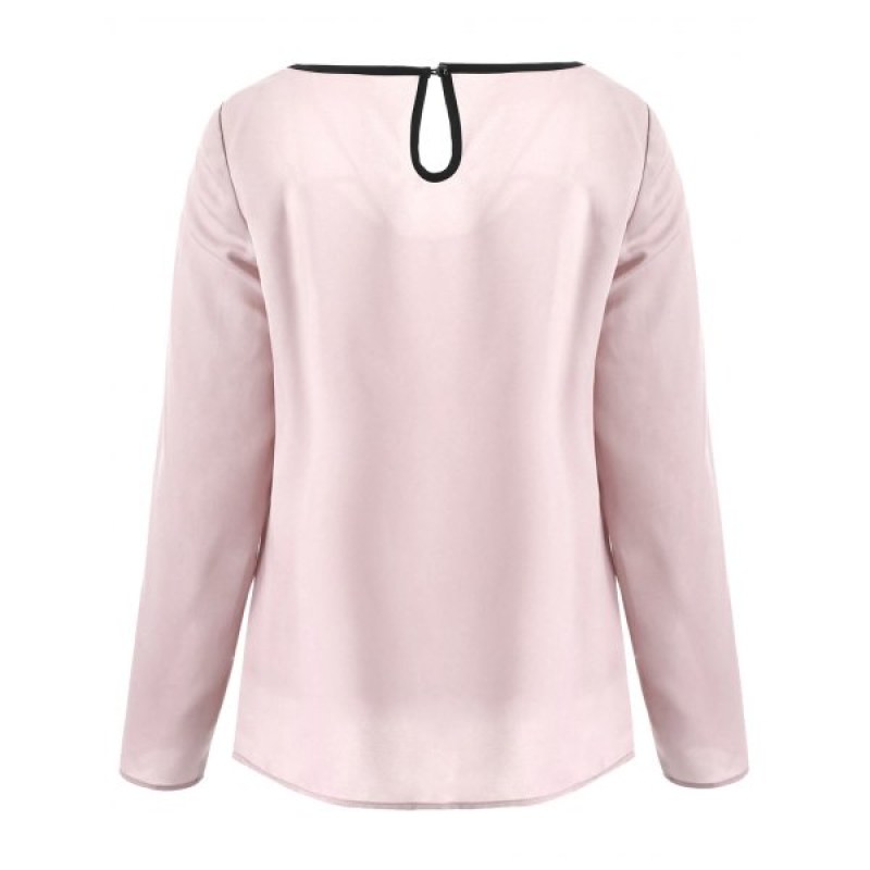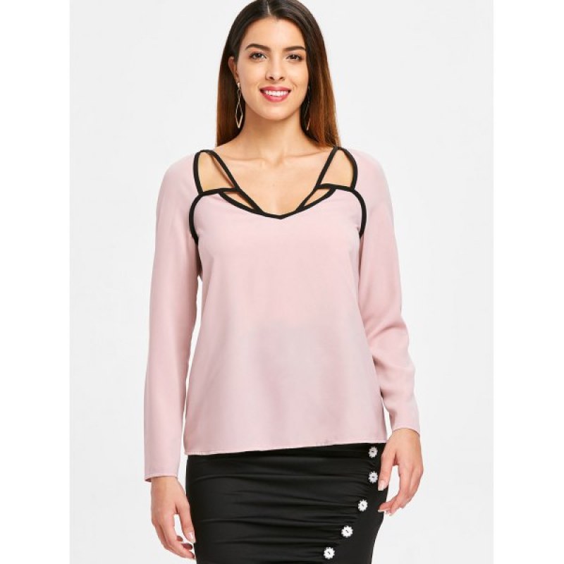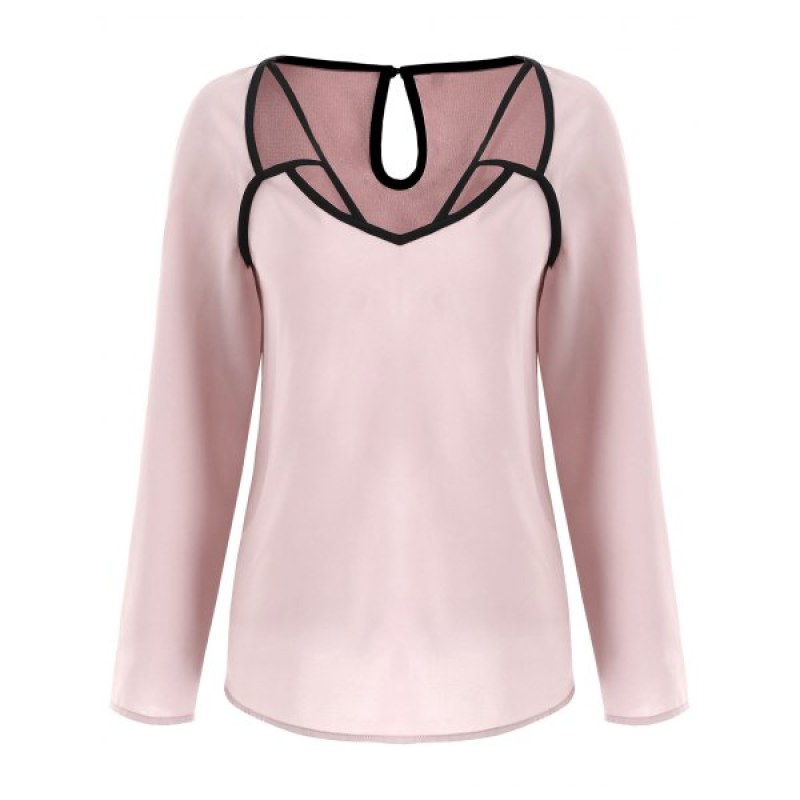 Cut Out Contrasting Blouse - Light Pink