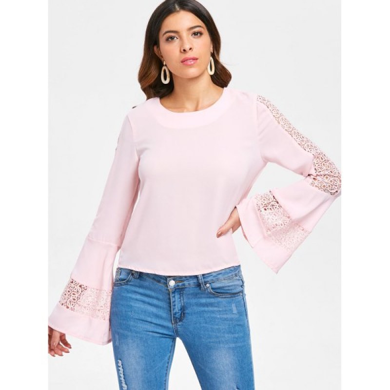 Bell Sleeve ace Crochet Blouse - Pink Bubblegum